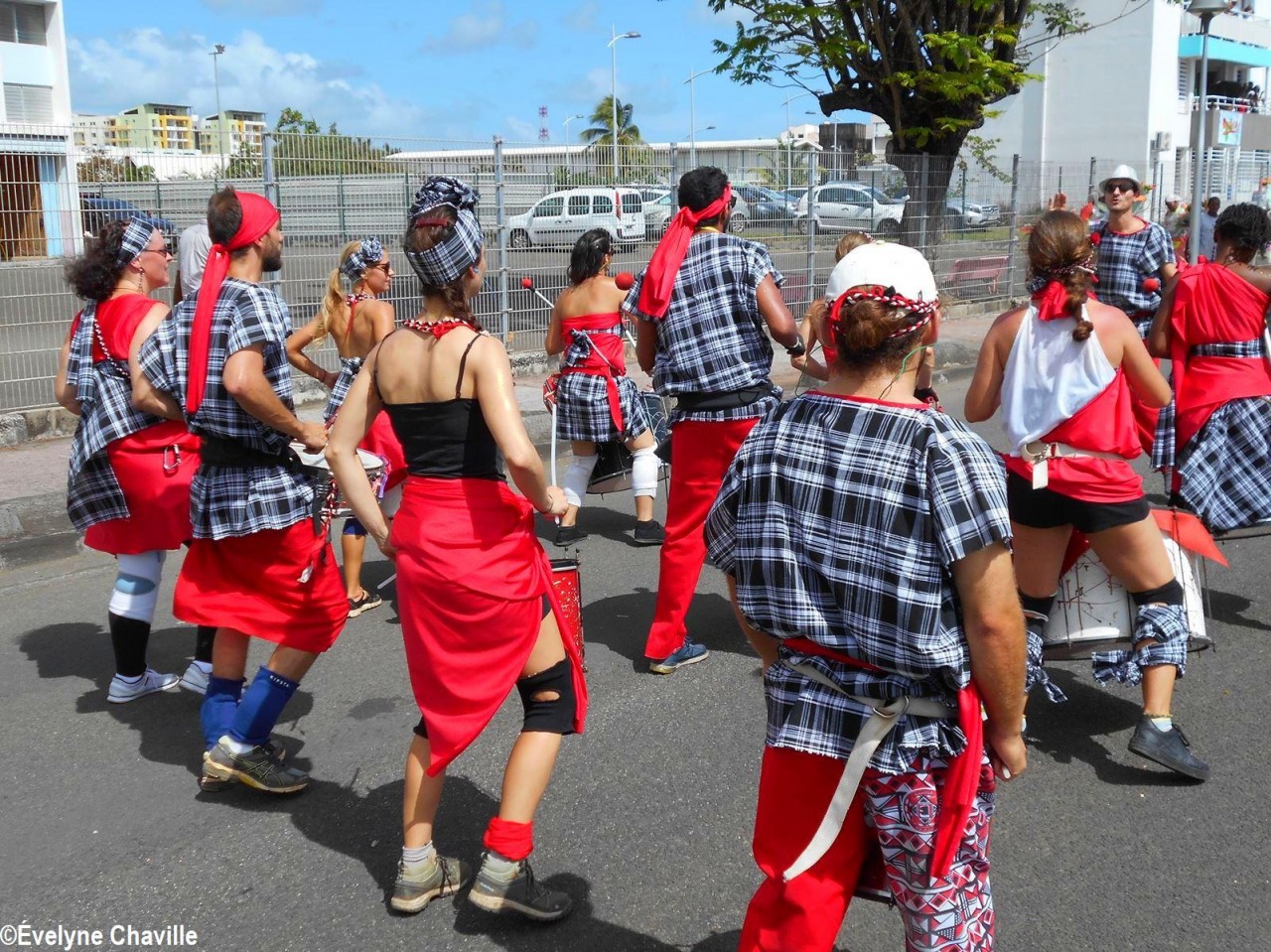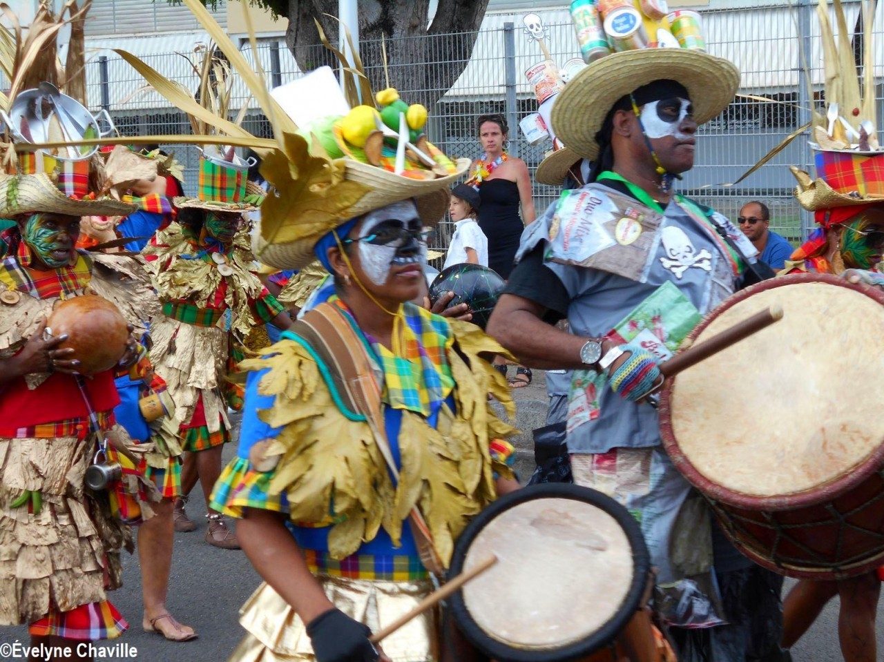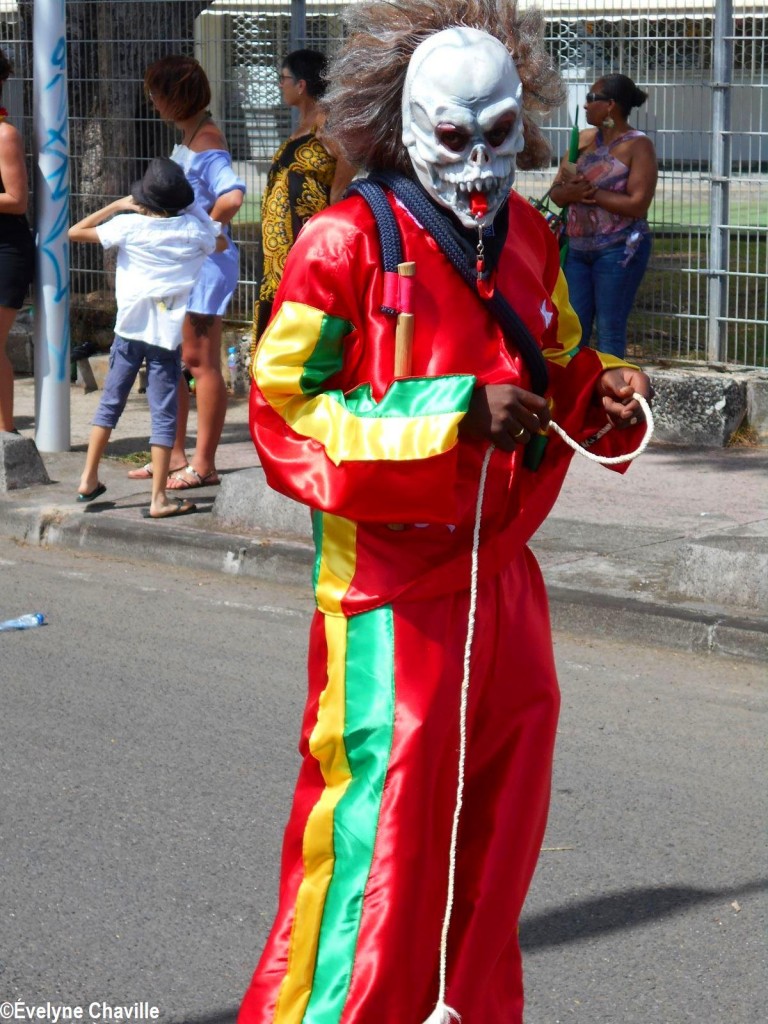 Hacia las 4:30 de la tarde, los 40 “grupos con tambores“ y “grupos con máscaras” que vinieron de varios municipios y ciudades de la isla ya habían empezado a desfilar y ya los habíamos fotografiado. La gran mayoría de los 100 000 espectadores que se habían agrupado a lo largo del circuito de 5 kilómetros – y alrededor de esta famosa alfombra roja – tuvieron que esperar hasta las 10:00 de la noche para verlos. Kariculture.net ya estaba con los “grupos de piel” que habían comenzado su desfile a las 7:00 de la noche…