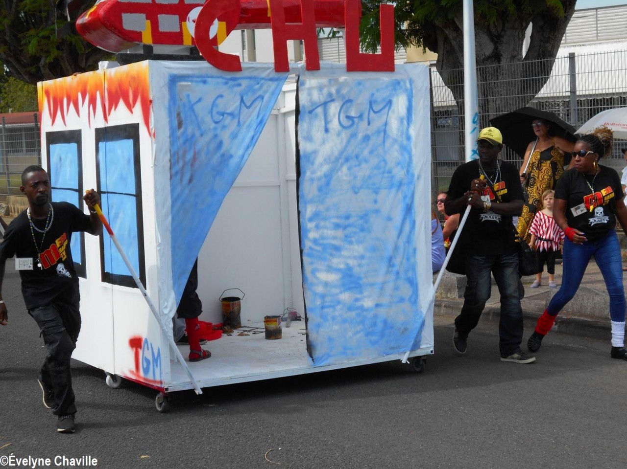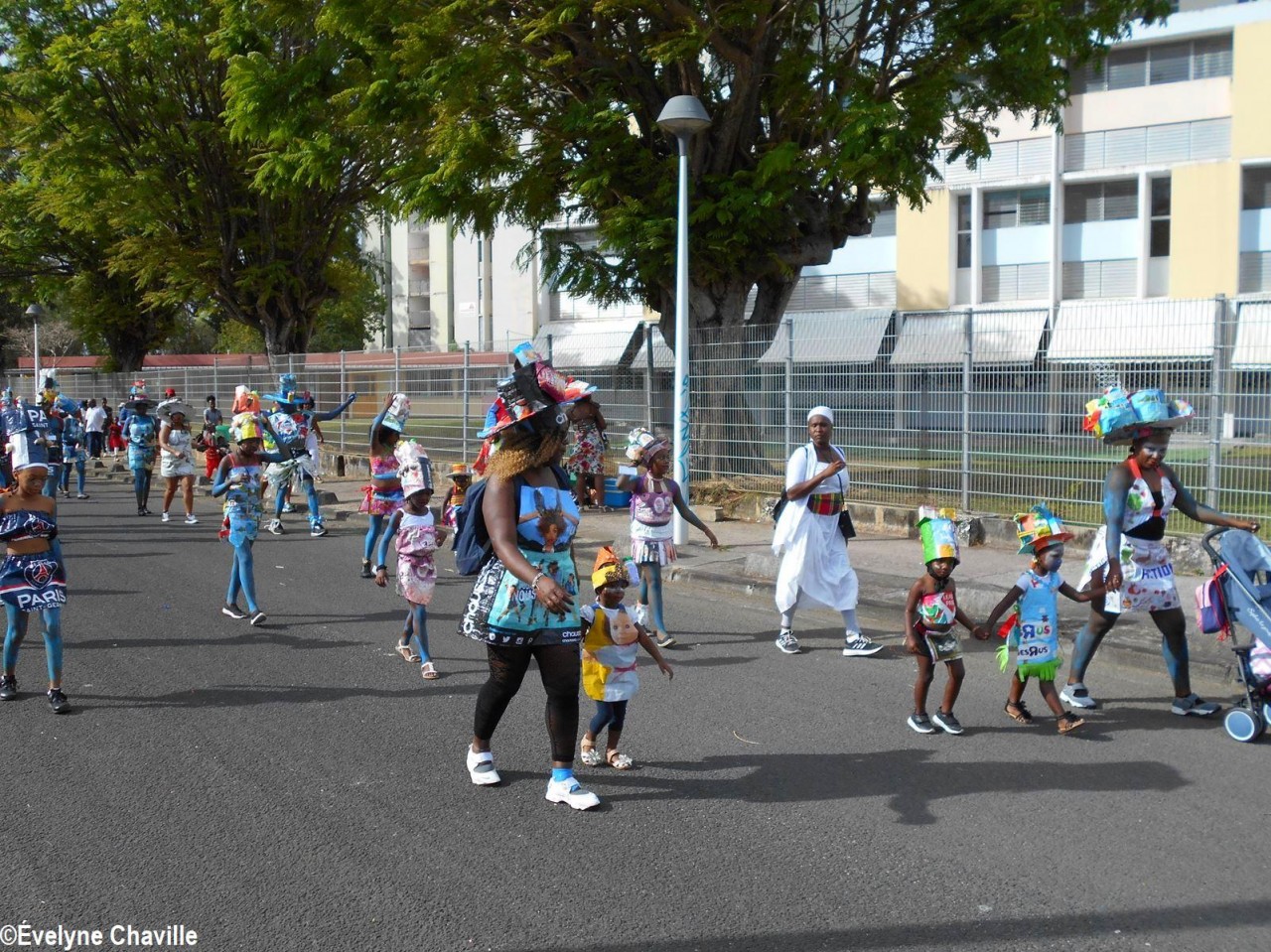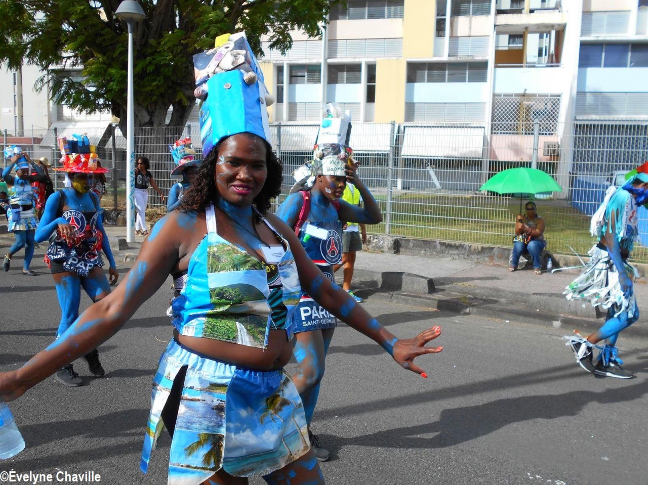 Este año, elegimos innovar. En efecto, fuimos a la salida de este gran desfile en el barrio de Lauricisque en Pointe-à-Pointe. A las doce en punto, el saque fue hecho. Pudimos hablar, bromear y reír con los miembros de los diferentes grupos. Allá, no hubo micro, cámara de televisión y el ambiente fue muy cool… Hubo que notar la participación en este desfile de la 1ra y la 2da Dama de Honor de la Reina-Madre, la Reina y el 1er Heredero del Rey del Carnaval Tropical de París 2018. Vimos una sinfonía de colores y de sonidos que escenificaban temas como la naturaleza, el agua, el calentamiento global y la extinción de las abejas, la producción local, el incendio en el Centro Hospitalario Universitario de Guadalupe y sus consecuencias, la paz, el amor, la música, el cine etc.