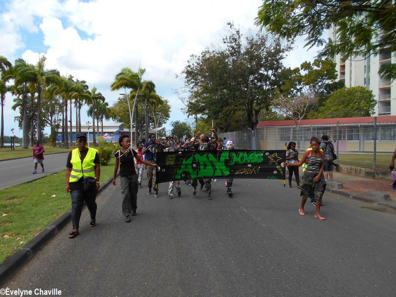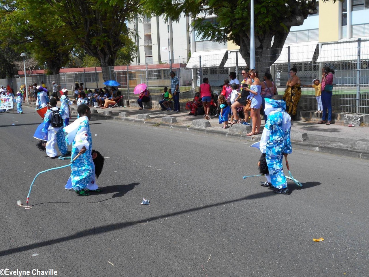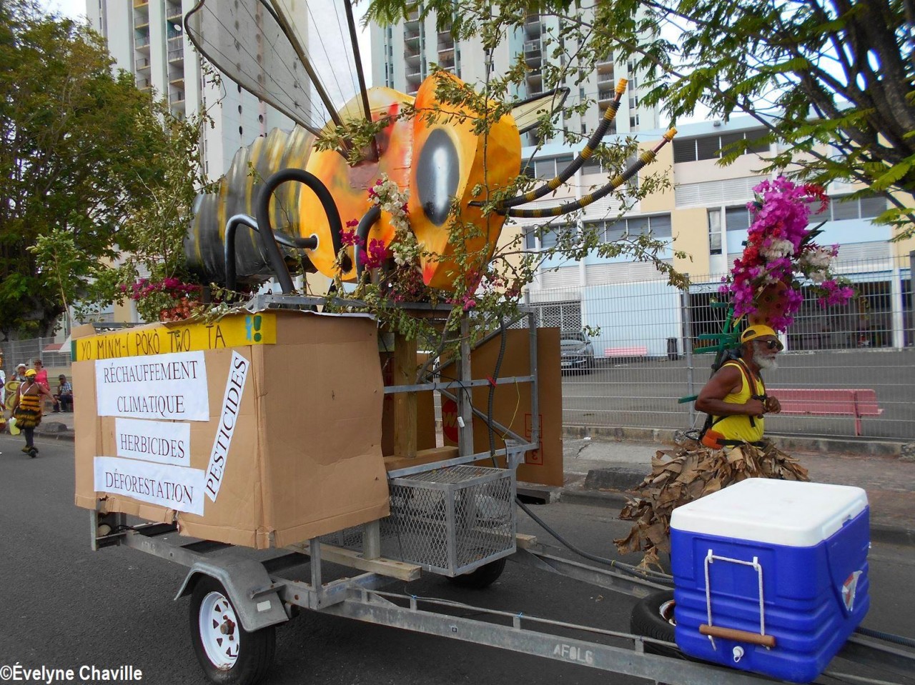 Este año, elegimos innovar. En efecto, fuimos a la salida de este gran desfile en el barrio de Lauricisque en Pointe-à-Pointe. A las doce en punto, el saque fue hecho. Pudimos hablar, bromear y reír con los miembros de los diferentes grupos. Allá, no hubo micro, cámara de televisión y el ambiente fue muy cool… Hubo que notar la participación en este desfile de la 1ra y la 2da Dama de Honor de la Reina-Madre, la Reina y el 1er Heredero del Rey del Carnaval Tropical de París 2018. Vimos una sinfonía de colores y de sonidos que escenificaban temas como la naturaleza, el agua, el calentamiento global y la extinción de las abejas, la producción local, el incendio en el Centro Hospitalario Universitario de Guadalupe y sus consecuencias, la paz, el amor, la música, el cine etc.