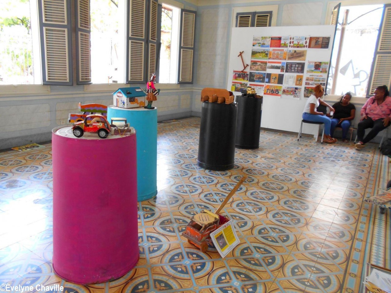 A partir del viernes 20 de septiembre, varias escuelas de la ciudad llegaron a esta antigua casa parroquial ubicada cerca de la Place de la Victoire para descubrir cómo se divertían sus mayores en su infancia e incluso cuando se hicieron adultos. La mayoría de estos juguetes y juegos fueron inventados y fabricados por las generaciones de más edad que no tenían mucho dinero con materiales naturales como piedras recogidas en las playas (pichinn), palitos de coco (cometa) o recortes de madera (kabwa, patineta) y materiales industriales como neumáticos usados (rueda), bolsas que servían para transportar mercancías (carreras de bolsas), botes (zancos), llantas de bicicleta (sèk) entre otros. El reciclaje del que algunos hablán tanto ahora como una novedad, ya se hacía por las personas mayores…