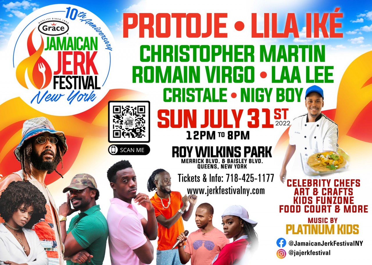 Un aperitivo de artistas experimentados y nuevas sensaciones están en el menú de la celebración del 10º aniversario del Grace Jamaican Jerk Festival de New York. El increíble cartel de este año satisfará los paladares de los amantes del reggae, con la presencia de Protoje, Lila Ike, Romain Virgo, Christopher Martin y Laa Lee (para su primera actuación en Nueva York), entre otros artistas.