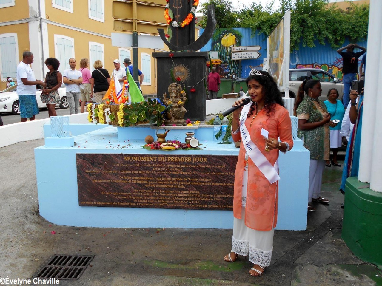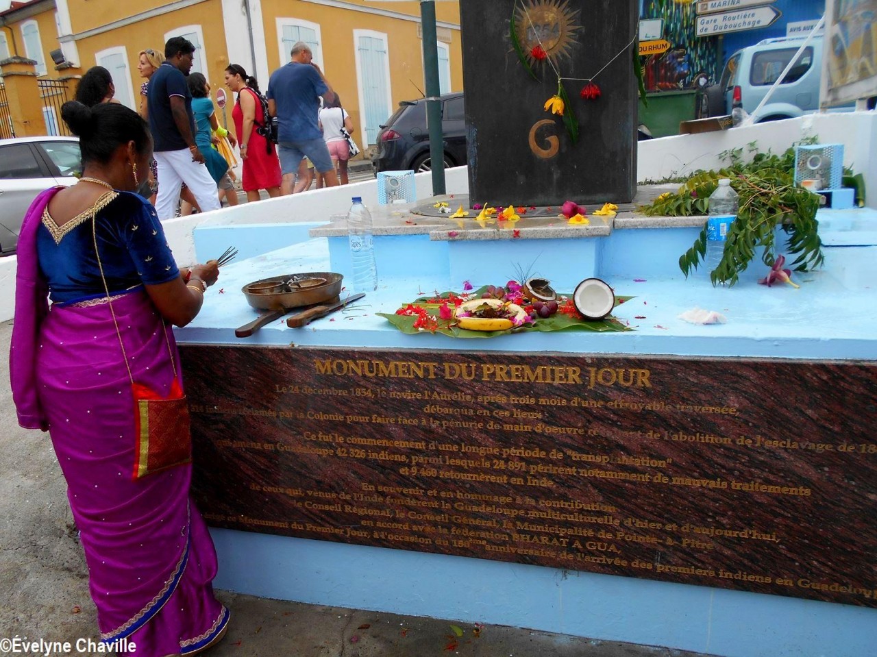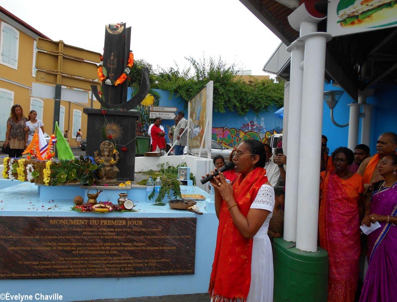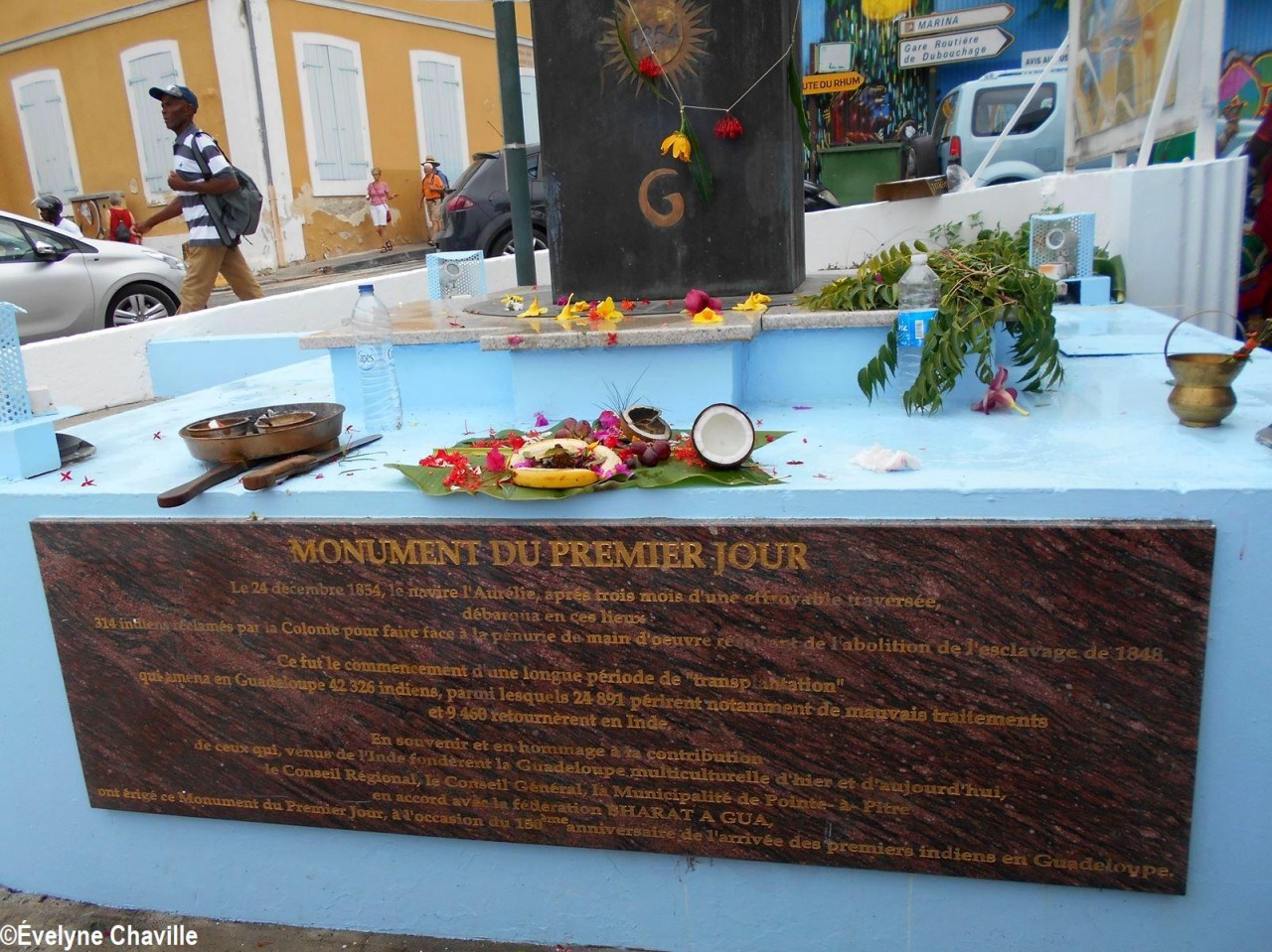 Comme chaque année, le 24 décembre, est donc un jour important pour les descendants de ces femmes et hommes venus d’Inde au 19e siècle. En effet, lundi dernier, la foule s’est rassemblée devant le “Monument du Premier Jour”, érigé en 2004 par le Conseil Régional de la Guadeloupe, le Conseil Général (maintenant Conseil Départemental) de la Guadeloupe et la municipalité de Pointe-à-Pitre en accord avec la Fédération Bharat A Gua à l’occasion du 150e anniversaire de l’arrivée des premiers Indiens en Guadeloupe, et plus précisément à La Darse, afin de commémorer la mémoire de ces travailleurs venus du sous-continent.