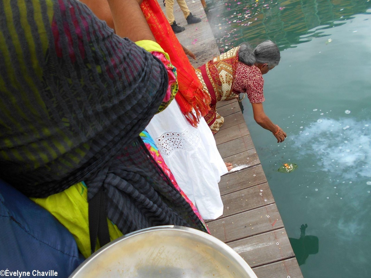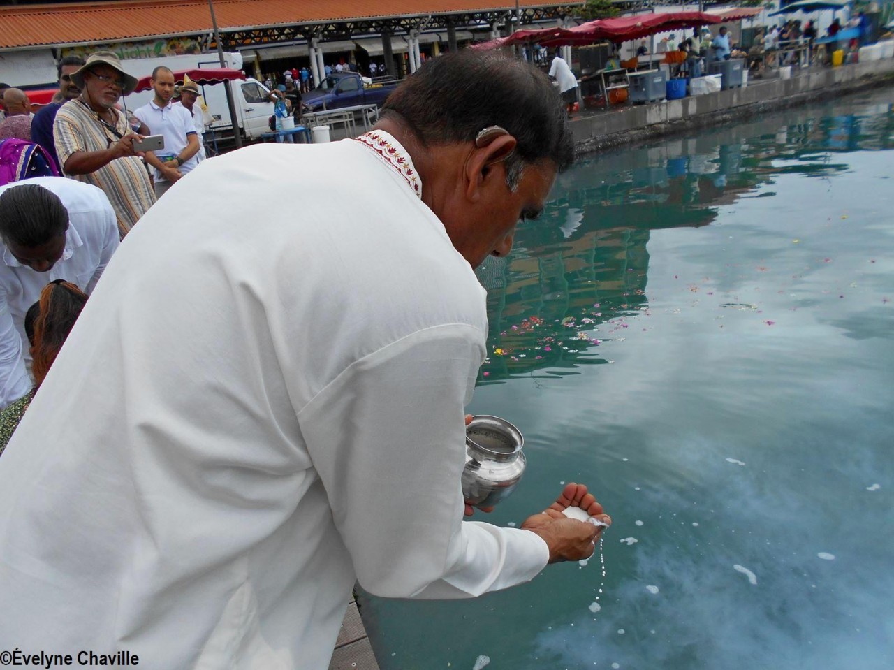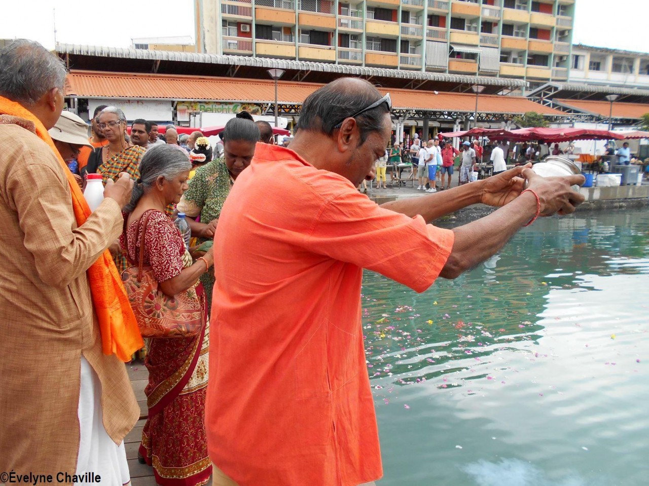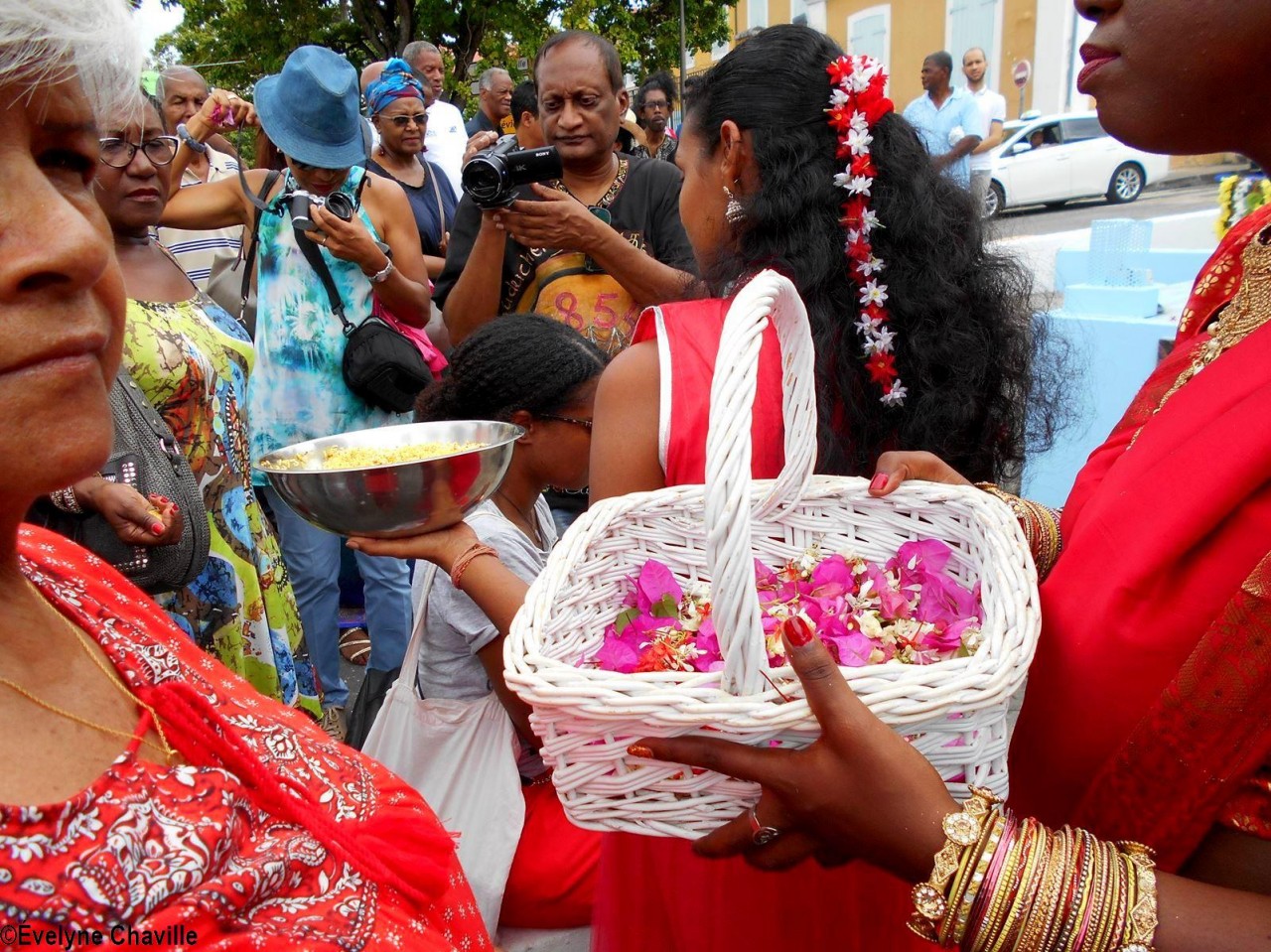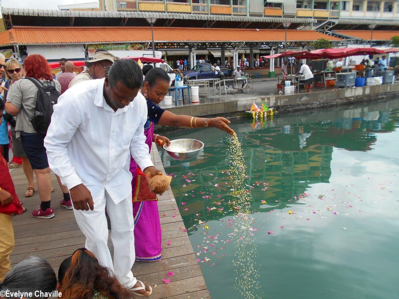 Malgré le temps pluvieux, le public composé de locaux et de touristes a écouté les discours des différents représentants officiels, a assisté à des danses indiennes et a participé aux diverses offrandes (fleurs, riz, lait etc…) à la mer à la mémoire de ces travailleurs indiens. Un petit bateau construit en bois et décoré avec de la mousse et des fleurs symbolisant “L’Aurélie” a été mis à la mer pour marquer le retour.