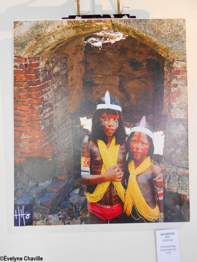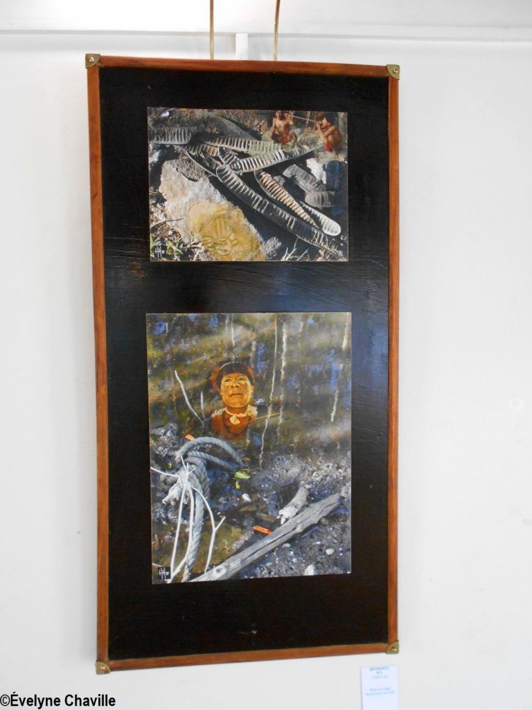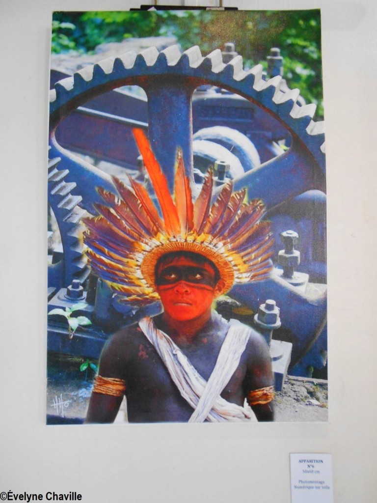 Ensuite, il a fallu faire un choix des fonds naturels, de la texture, des débris qui rappellent le passé et le présent. Les personnes intégrées aux photos viennent pour la plupart des tribus Guarani et Zo’é du Brésil, seules quelques-unes viennent de la Guyane française. “En fait, en 2005, j’ai été invité à participer à l'”Année France-Brésil” parce que j’avais publié une bande dessinée adaptée au roman de Jorge Amado, “Le Vieux Marin”. J’ai profité de ce séjour de trois mois pour me rendre à Santarém, une ville moyenne, où avaient lieu les Jeux Olympiques des nations amérindiennes. Je n’étais pas invité officiellement à ce rassemblement qui se déroule tous les deux ans mais, pendant quinze jours, j’ai pu rencontrer ces peuples et les photographier”, raconte le plasticien.