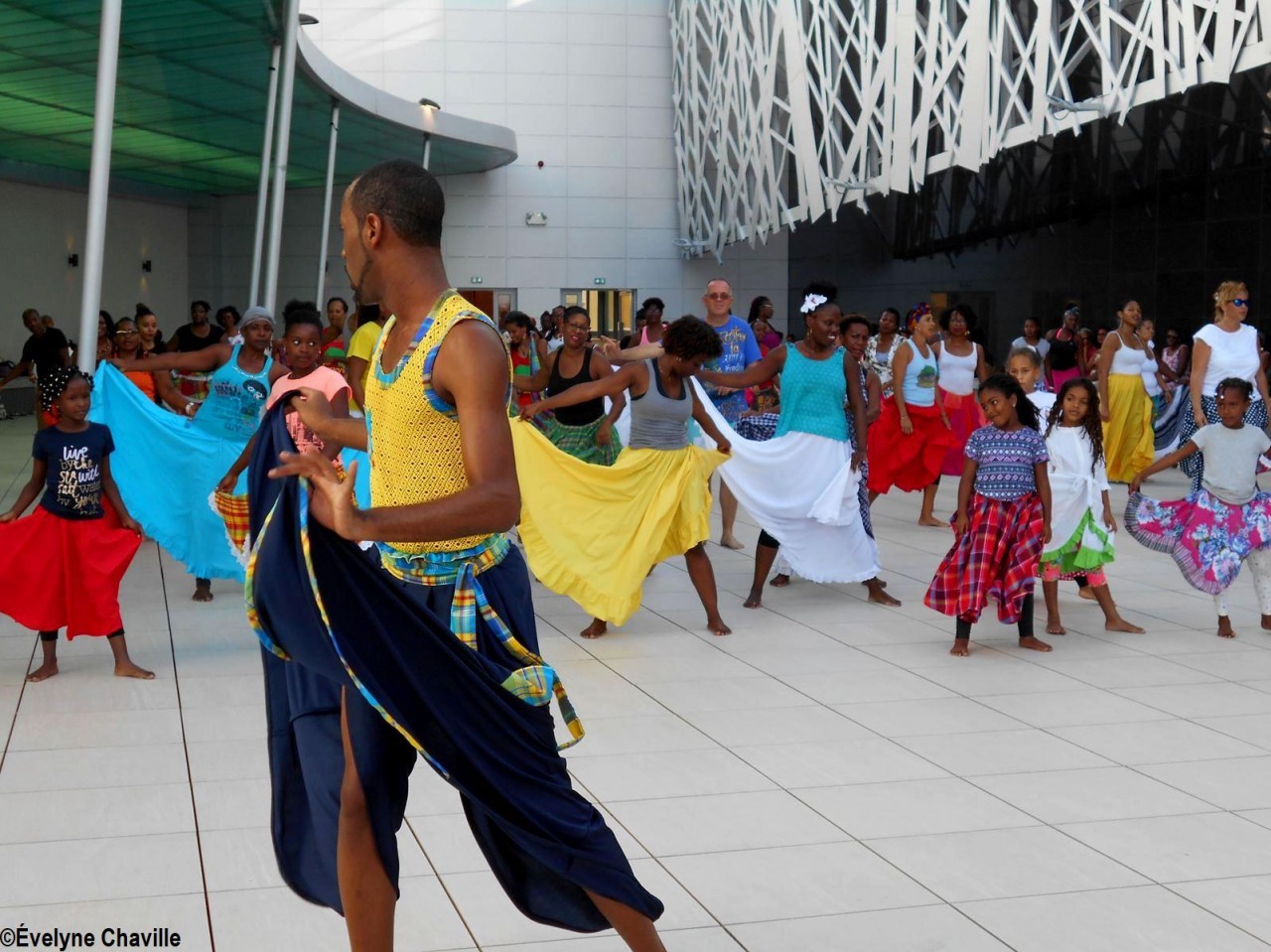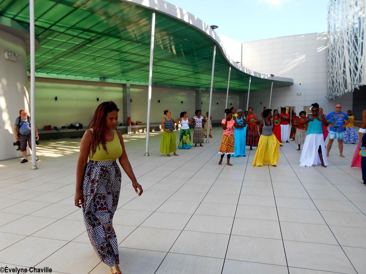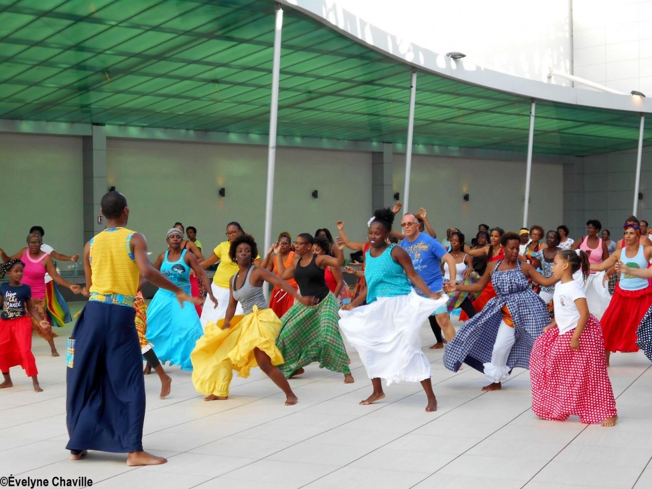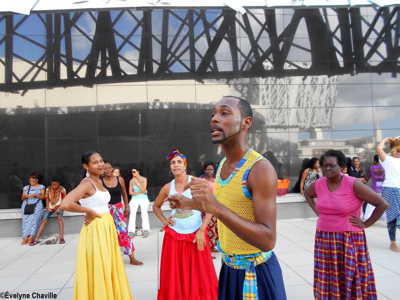 Le dimanche 15 avril dernier, Matthieu Plantier, le directeur artistique et président de l’association “Majestika”, était chargé d’animer cette initiation à la danse pour la seconde fois sur le thème des “Gestes sacrés”. Près d’une centaine de personnes était présente sur la “Terrasse Événementielle” du Mémorial ACTe cet après-midi-lá. Même si les femmes étaient majoritaires, les hommes et les enfants n’ont pas démérité… Pendant 2 heures, les différents rythmes du gwoka ont été visités et Matthieu Plantier, avec beaucoup d’humour, a su mettre à l’aise toutes les personnes qui avaient quelques lacunes. Résultat: tout le monde s’est exprimé librement par la danse, tout le monde a transpiré dans la bonne humeur, selon son niveau et surtout sans avoir peur d’être jugé. On a également pu noter une parfaite complicité entre le danseur et les deux “tanbouyé” ou “joueurs de tambour” à savoir Fanswa Ladrézeau et Daniel Savonnier dit “Tirèn”. Cette belle rencontre autour du gwoka (chant-musique et danse) s’est terminée par des applaudissements…