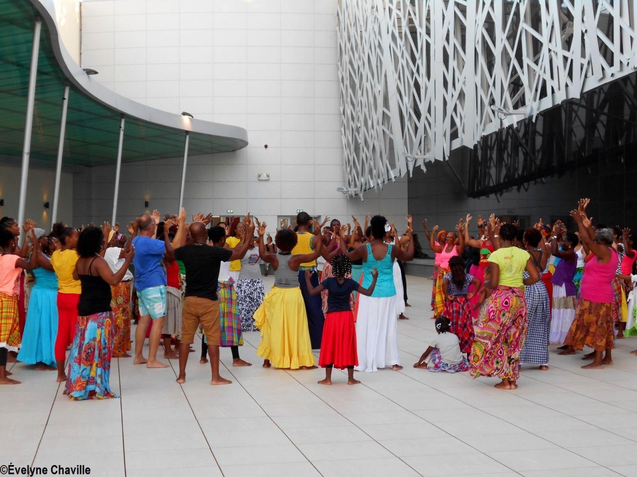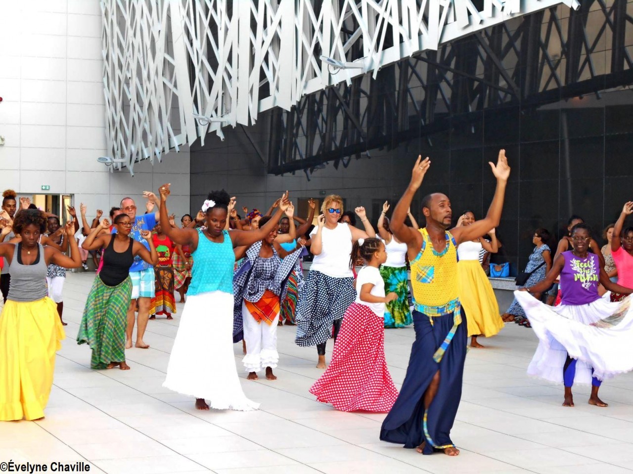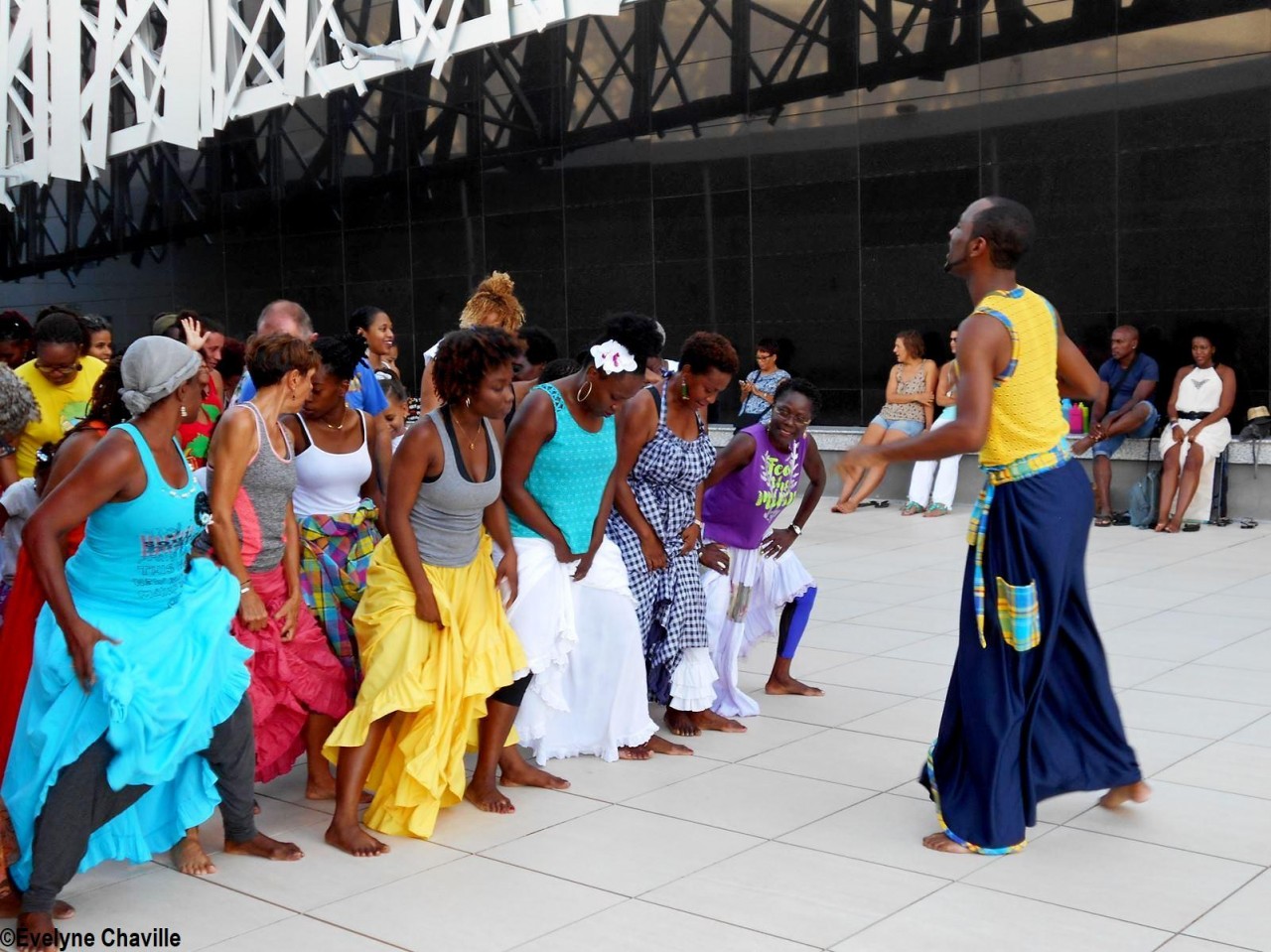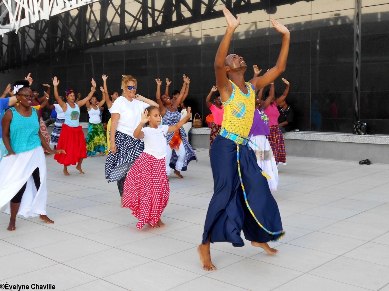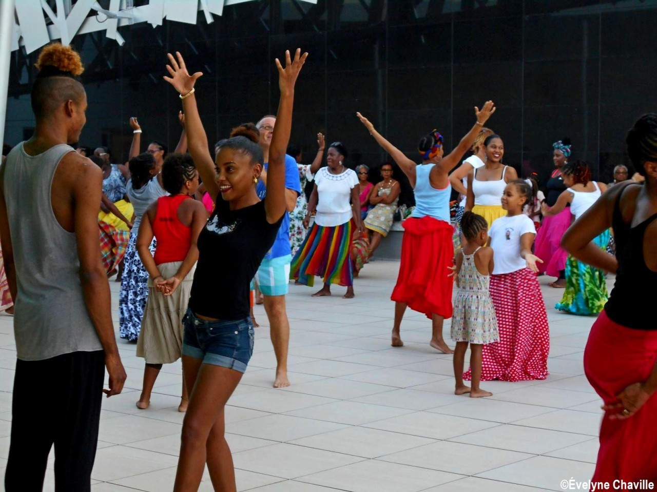Le dimanche 15 avril dernier, Matthieu Plantier, le directeur artistique et président de l’association “Majestika”, était chargé d’animer cette initiation à la danse pour la seconde fois sur le thème des “Gestes sacrés”. Près d’une centaine de personnes était présente sur la “Terrasse Événementielle” du Mémorial ACTe cet après-midi-lá. Même si les femmes étaient majoritaires, les hommes et les enfants n’ont pas démérité… Pendant 2 heures, les différents rythmes du gwoka ont été visités et Matthieu Plantier, avec beaucoup d’humour, a su mettre à l’aise toutes les personnes qui avaient quelques lacunes. Résultat: tout le monde s’est exprimé librement par la danse, tout le monde a transpiré dans la bonne humeur, selon son niveau et surtout sans avoir peur d’être jugé. On a également pu noter une parfaite complicité entre le danseur et les deux “tanbouyé” ou “joueurs de tambour” à savoir Fanswa Ladrézeau et Daniel Savonnier dit “Tirèn”. Cette belle rencontre autour du gwoka (chant-musique et danse) s’est terminée par des applaudissements…