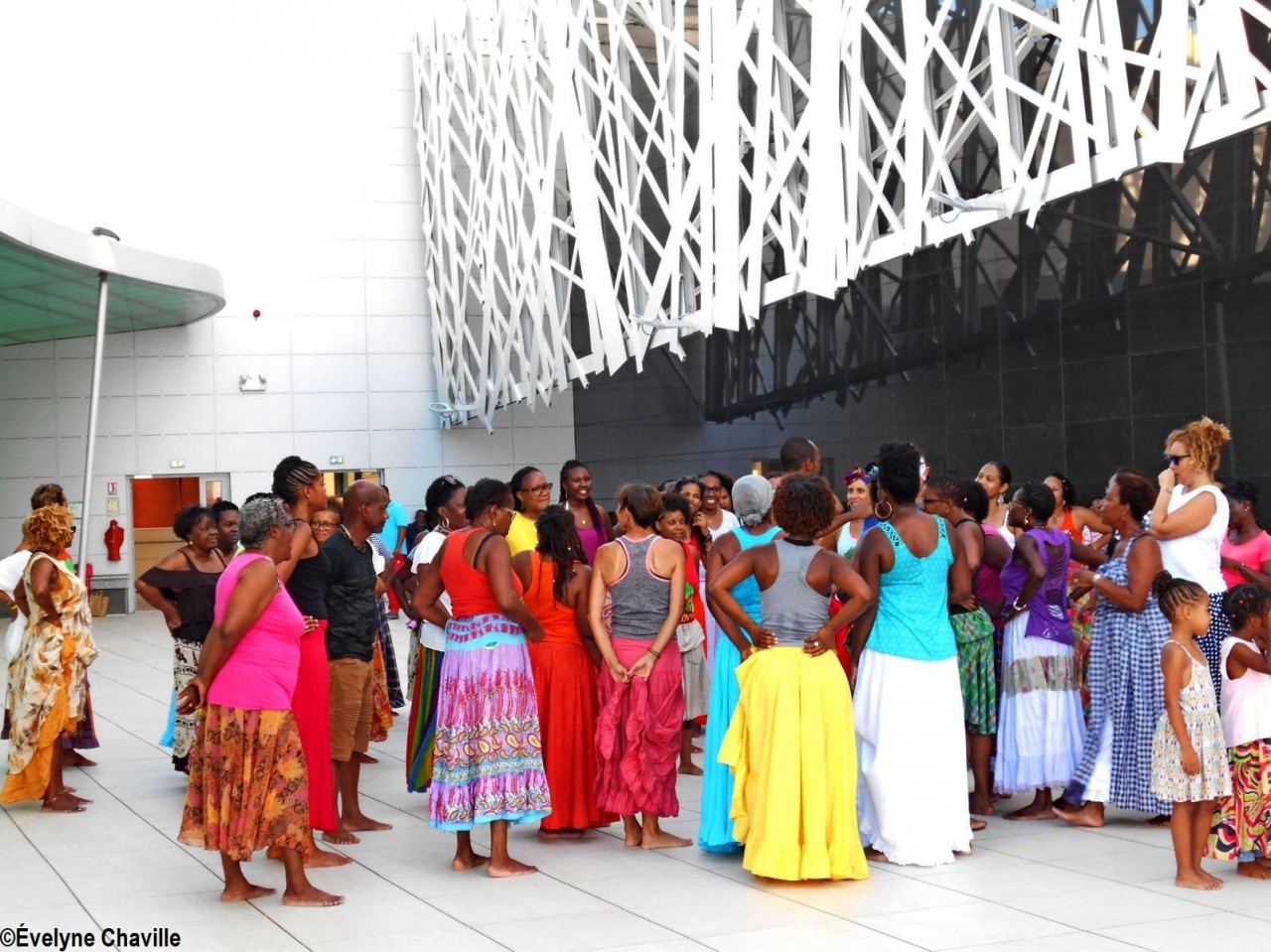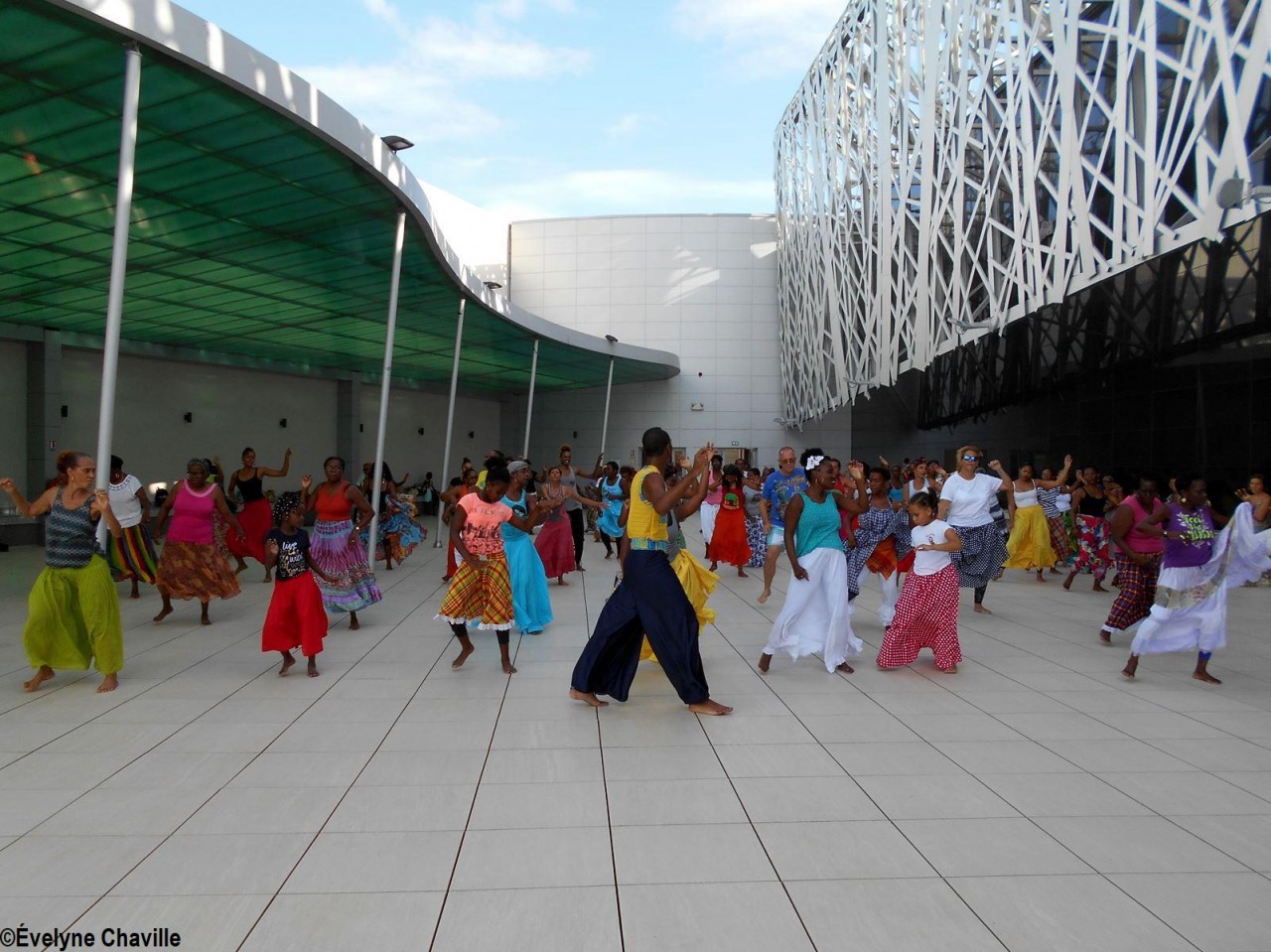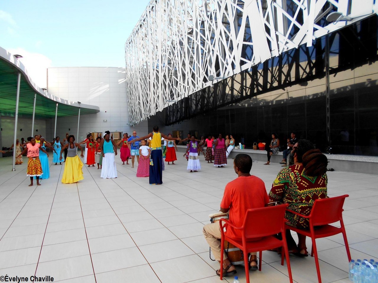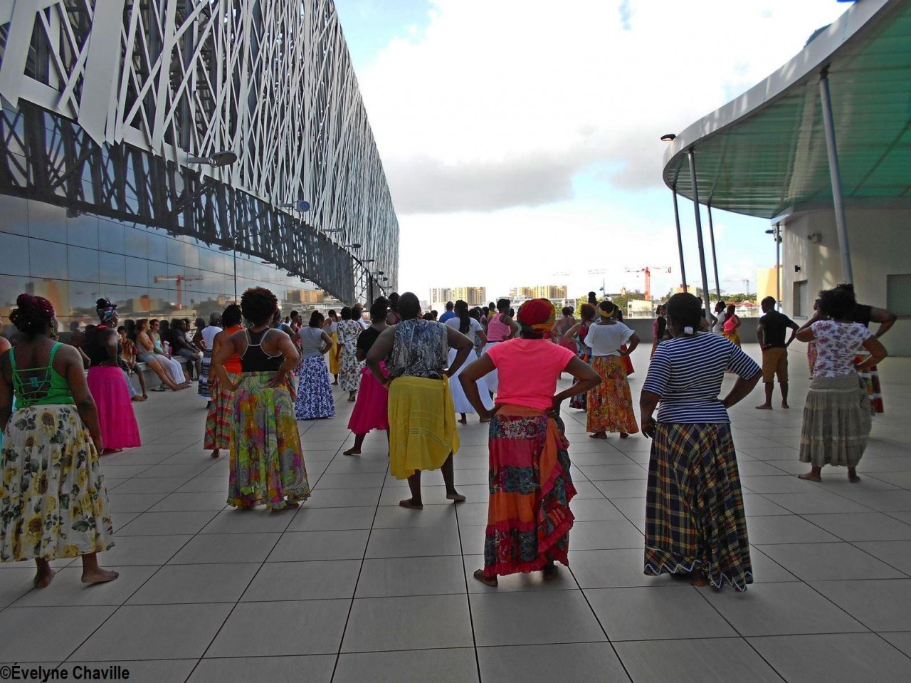 Le dimanche 15 avril dernier, Matthieu Plantier, le directeur artistique et président de l’association “Majestika”, était chargé d’animer cette initiation à la danse pour la seconde fois sur le thème des “Gestes sacrés”. Près d’une centaine de personnes était présente sur la “Terrasse Événementielle” du Mémorial ACTe cet après-midi-lá. Même si les femmes étaient majoritaires, les hommes et les enfants n’ont pas démérité… Pendant 2 heures, les différents rythmes du gwoka ont été visités et Matthieu Plantier, avec beaucoup d’humour, a su mettre à l’aise toutes les personnes qui avaient quelques lacunes. Résultat: tout le monde s’est exprimé librement par la danse, tout le monde a transpiré dans la bonne humeur, selon son niveau et surtout sans avoir peur d’être jugé. On a également pu noter une parfaite complicité entre le danseur et les deux “tanbouyé” ou “joueurs de tambour” à savoir Fanswa Ladrézeau et Daniel Savonnier dit “Tirèn”. Cette belle rencontre autour du gwoka (chant-musique et danse) s’est terminée par des applaudissements…