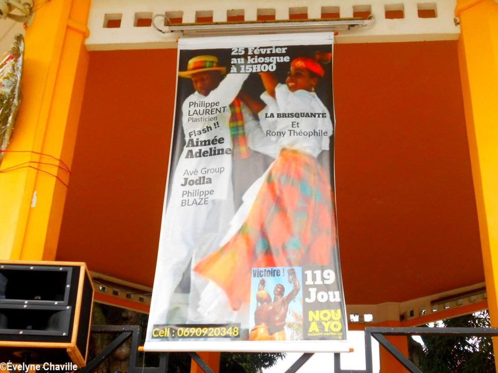 Sur l’affiche envoyée par mail laquelle avait été également exposée sous le kiosque de la Place de la Victoire pendant plusieurs jours pour annoncer la manifestation, figuraient certains noms du domaine artistique qui devaient participer à cet hommage : Philippe Laurent (un plasticien qui devait exécuter une fresque autour de la plaque apposée en l’honneur du tanbouyé Marcel Lollia “Vélo” ), Philippe Blaze et son groupe “Jodla” ; “La Brisquante” (la troupe de danse formée par Madame Adeline) et Rony Théophile ; le nom de Marcel Mavounzy n’y était pas inscrit…