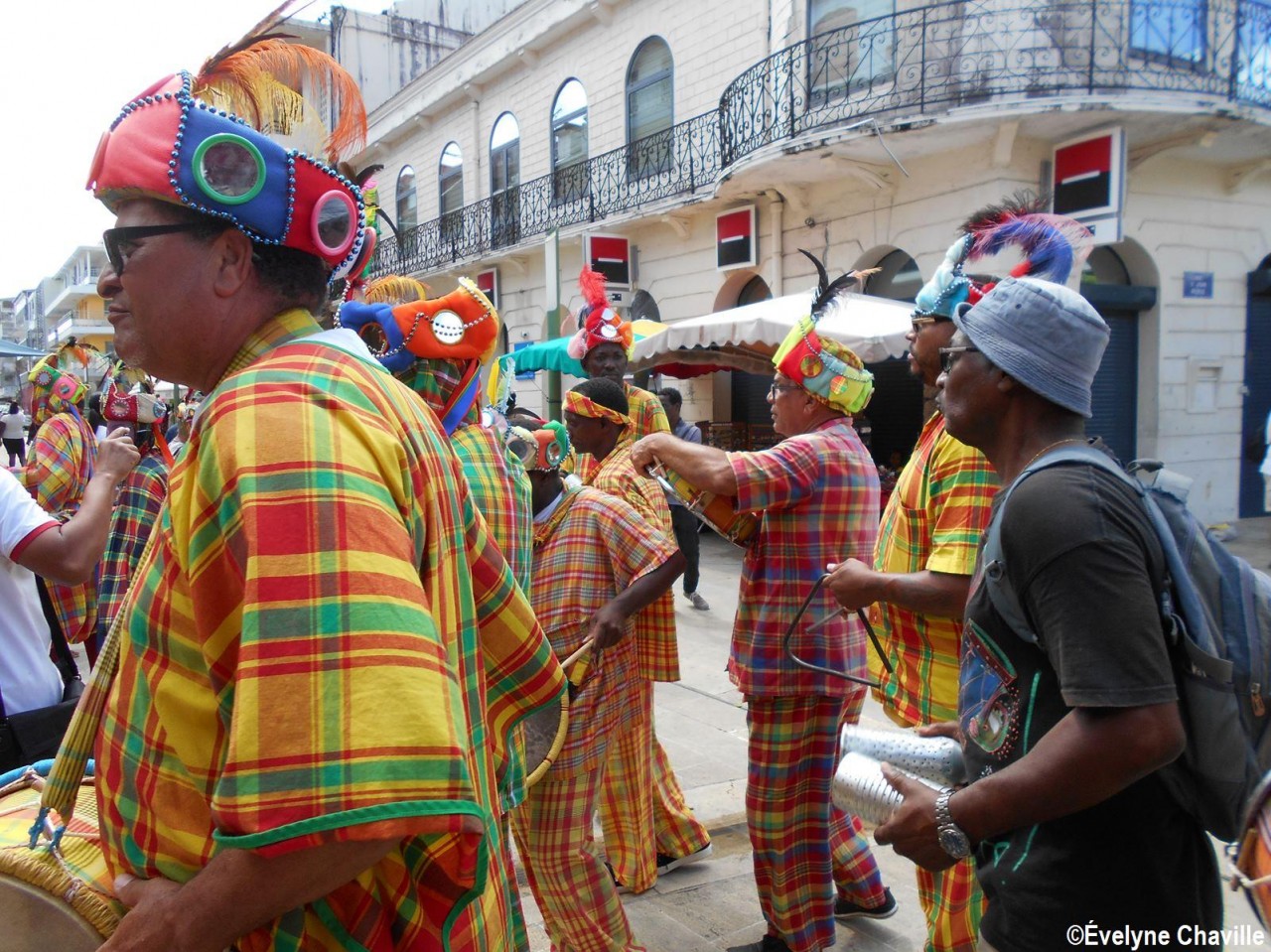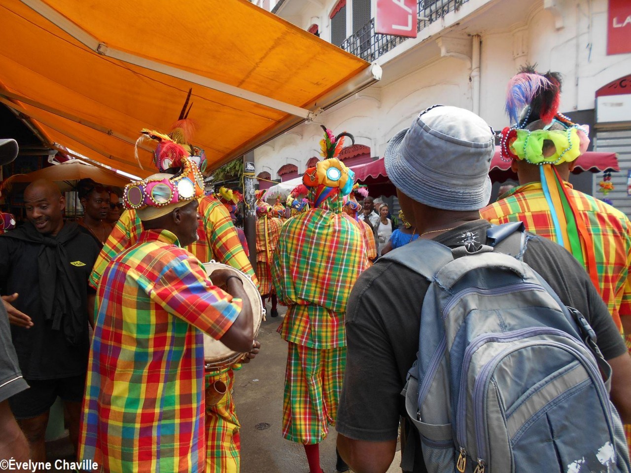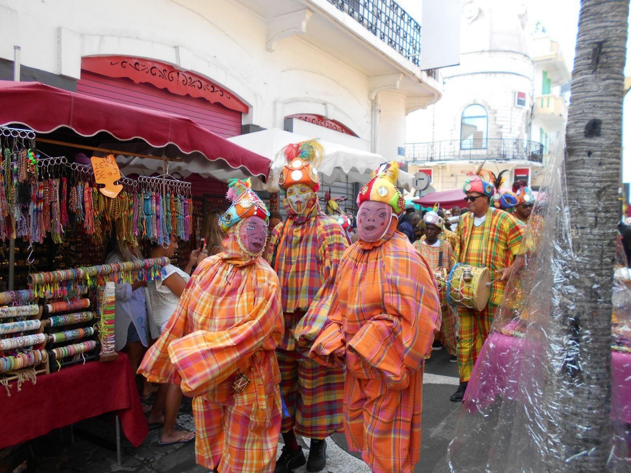 Pendant l’esclavage, les vêtements colorés étaient interdits, l’esclave ne pouvait pas s’habiller comme il le voulait et il devait s’identifier lors de ses déplacements autorisés. À la libération, comme un pied-de-nez à l’histoire et aux anciens esclavagistes, sont apparus ce costume de carnaval avec des couleurs très vives et ce masque qui couvre entièrement le visage ce qui rend impossible toute identification.