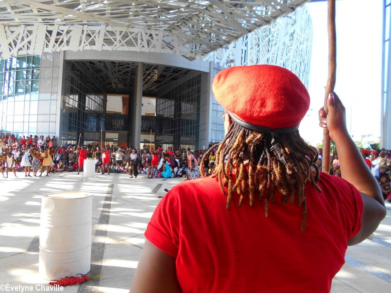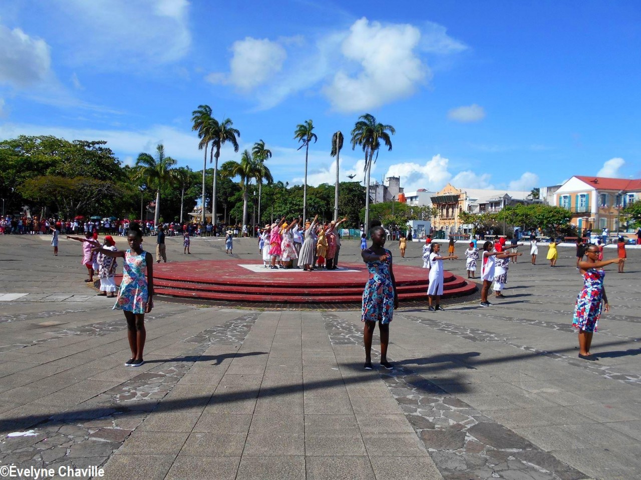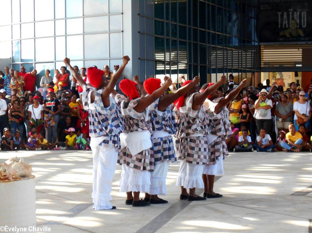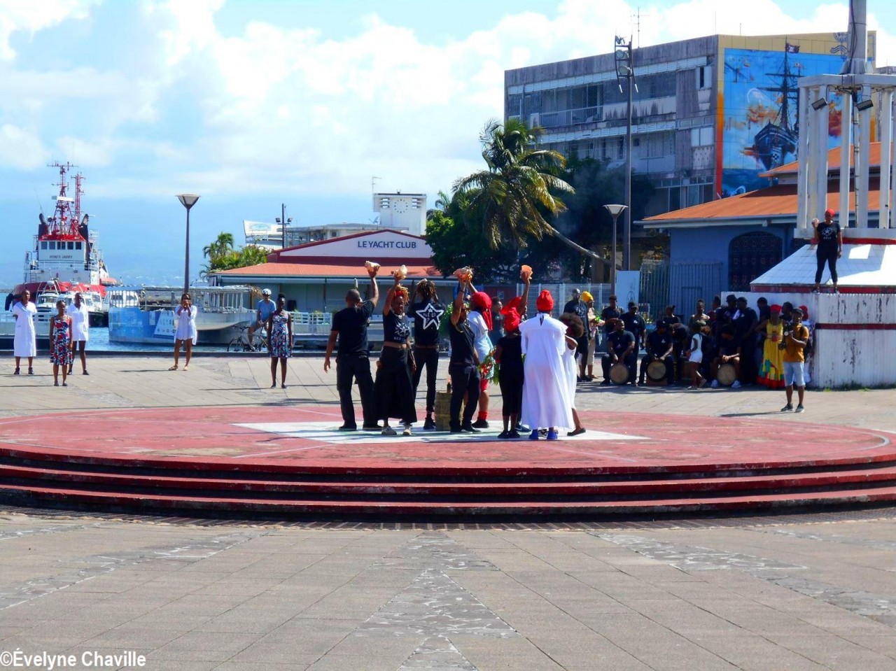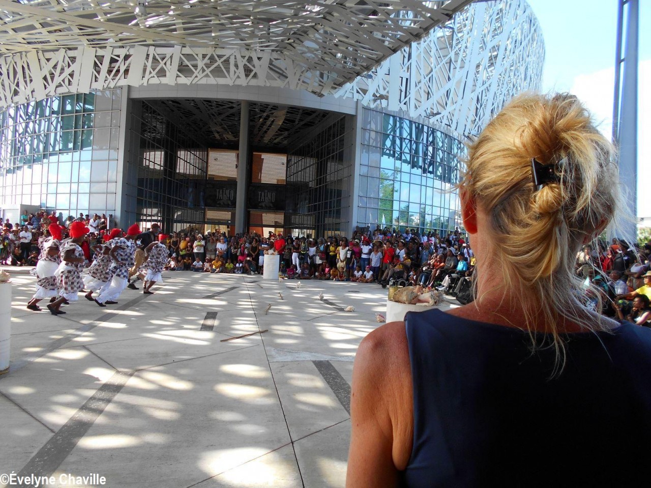 Cette fresque historique, créée par la chorégraphe guadeloupéenne Raymonde Pater Torin, a débuté à 15h00 sur la Place de la Victoire, là où les premiers coups de feu ont été tirés il y a aujourd’hui 52 ans, puis le cortège s’est dirigé vers le MACTe au son des tambours et des conques de lambi. Le spectacle s’est poursuivi jusqu’à 17h30 sur la grande Place de la Commémoration devant un public très attentif composé, entre autres, de personnes ayant vécu ce fait sanglant et de jeunes qui ont découvert ce massacre de mai 1967 qui est toujours entouré de nombreux mystères (nombre exact de morts, noms des personnes tuées etc.) dû notamment au mutisme et à la peur de la population à cette époque… La foule a été invitée à lancer à la mer des fleurs en mémoire des ancêtres esclaves et des victimes de 1967. Pour terminer, les spectateurs se sont joints aux musiciens et acteurs pour effectuer un défilé sur le site…