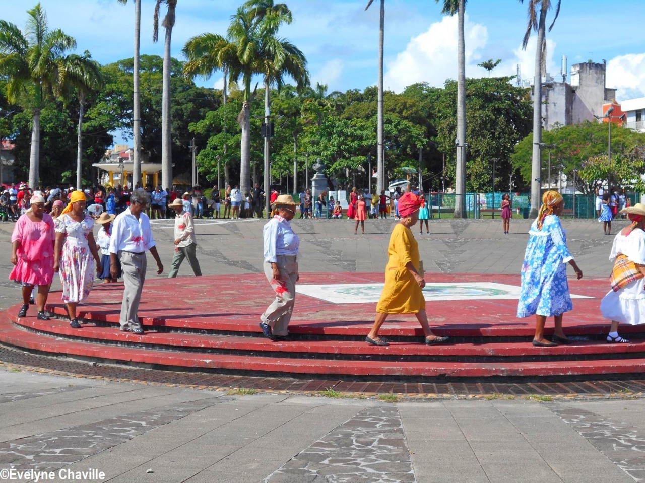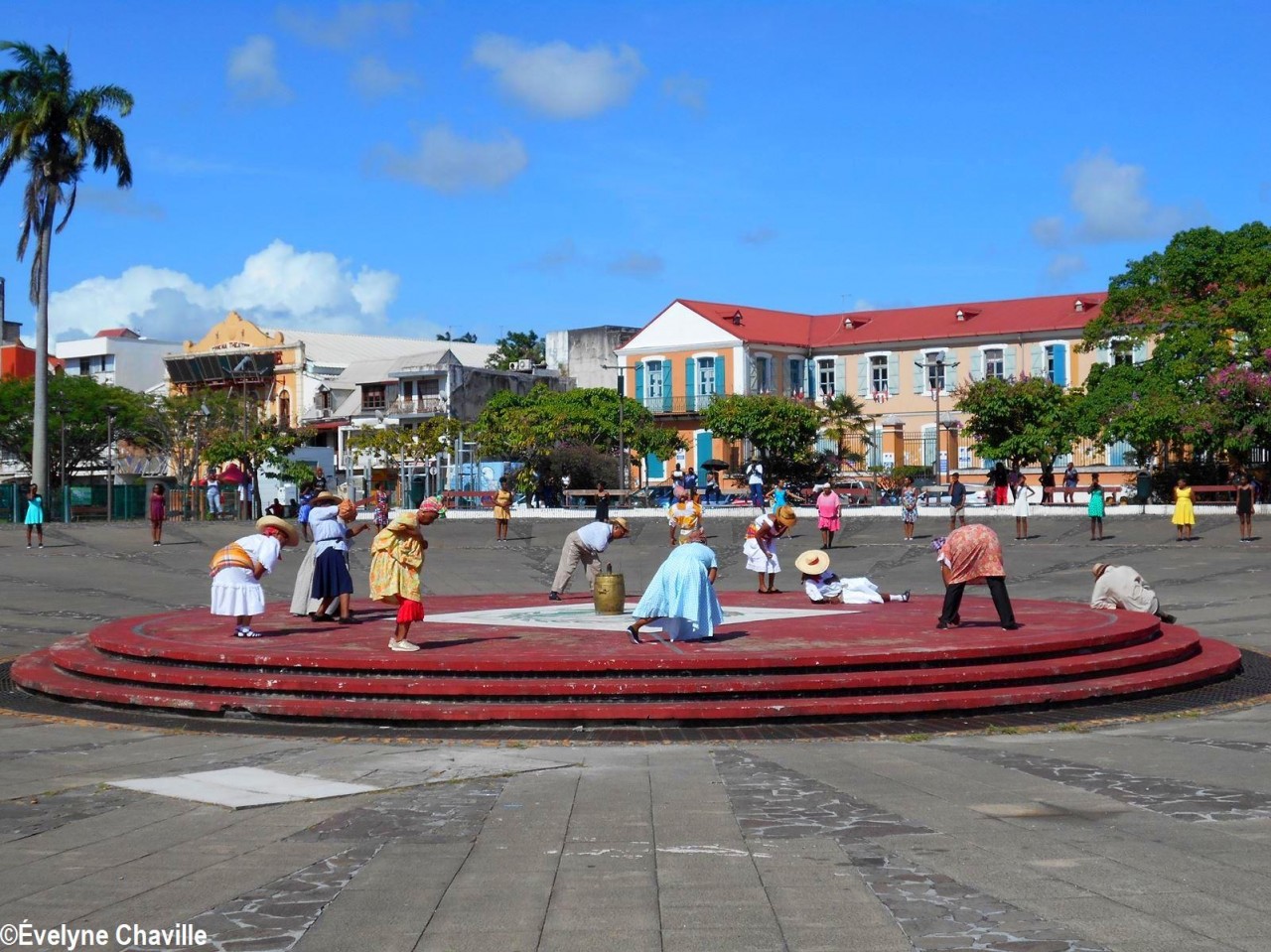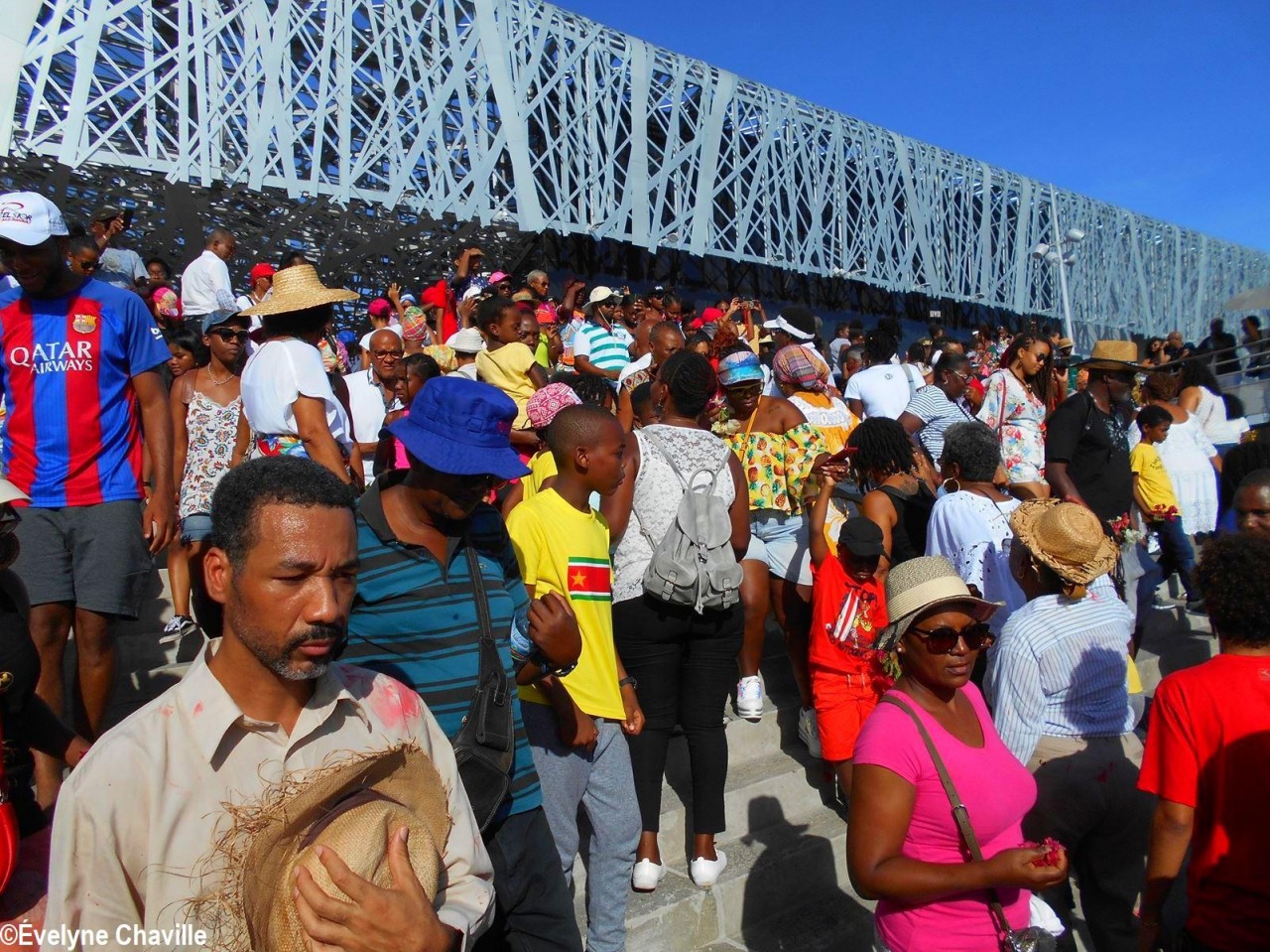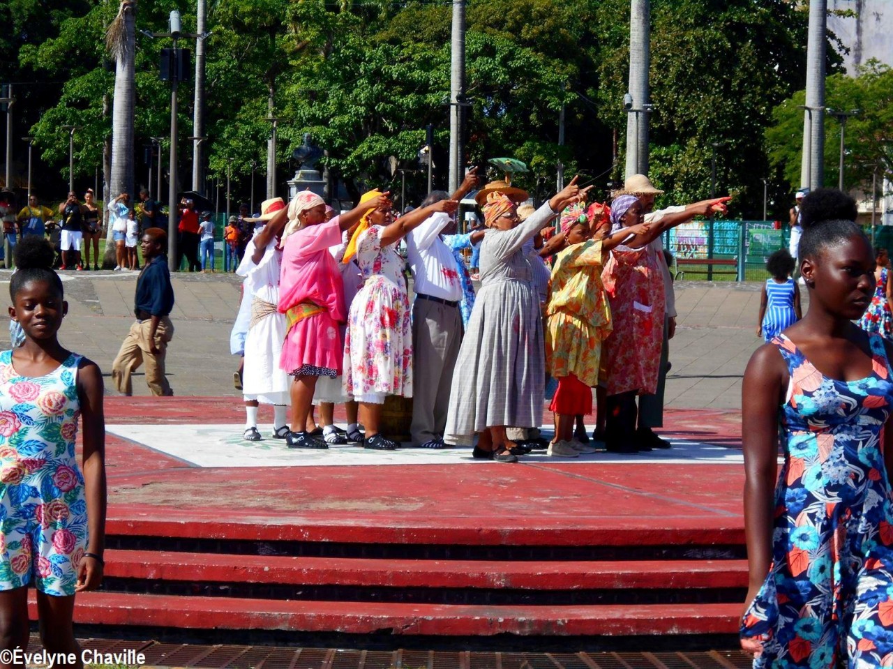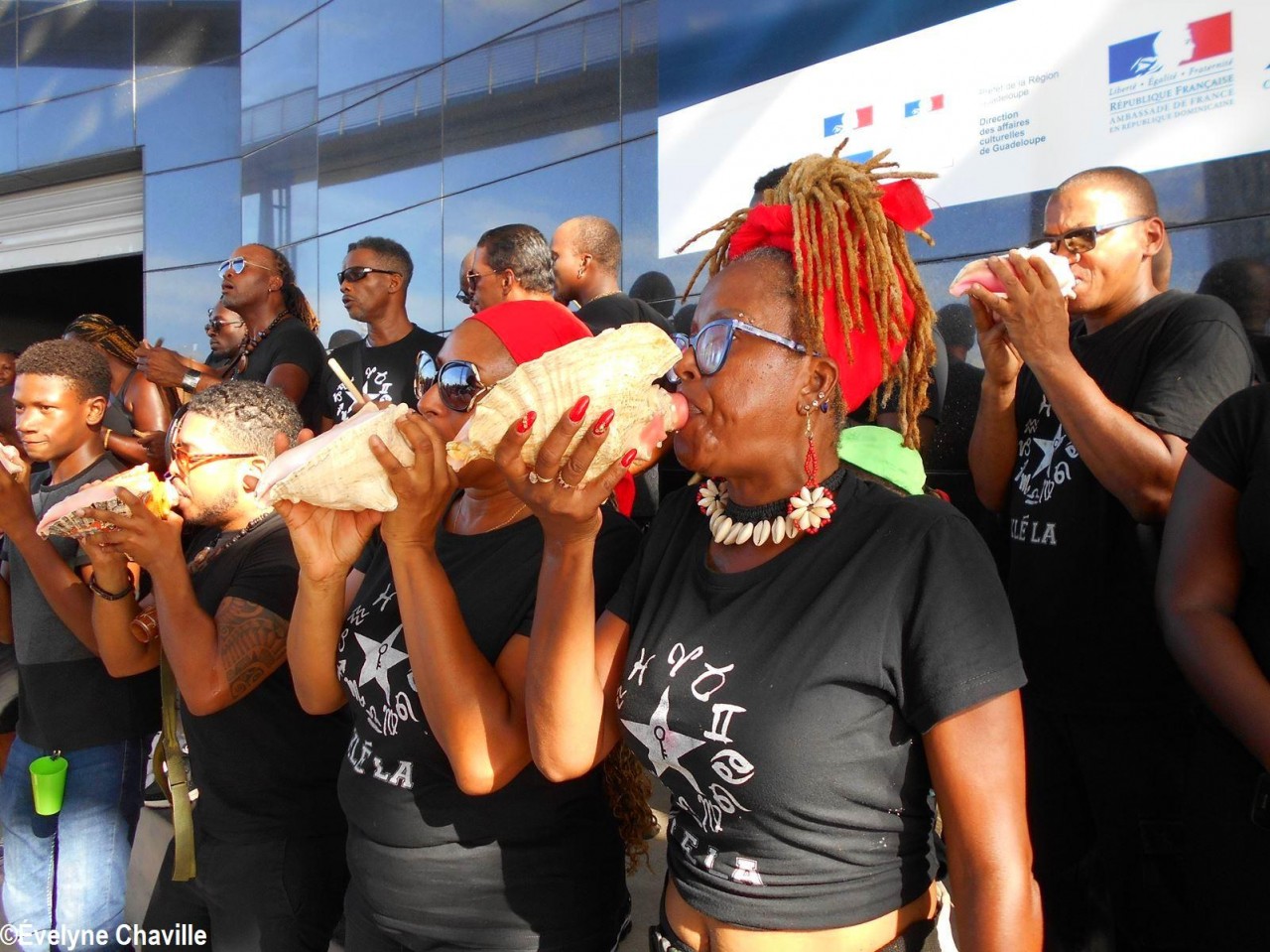Cette fresque historique, créée par la chorégraphe guadeloupéenne Raymonde Pater Torin, a débuté à 15h00 sur la Place de la Victoire, là où les premiers coups de feu ont été tirés il y a aujourd’hui 52 ans, puis le cortège s’est dirigé vers le MACTe au son des tambours et des conques de lambi. Le spectacle s’est poursuivi jusqu’à 17h30 sur la grande Place de la Commémoration devant un public très attentif composé, entre autres, de personnes ayant vécu ce fait sanglant et de jeunes qui ont découvert ce massacre de mai 1967 qui est toujours entouré de nombreux mystères (nombre exact de morts, noms des personnes tuées etc.) dû notamment au mutisme et à la peur de la population à cette époque… La foule a été invitée à lancer à la mer des fleurs en mémoire des ancêtres esclaves et des victimes de 1967. Pour terminer, les spectateurs se sont joints aux musiciens et acteurs pour effectuer un défilé sur le site…