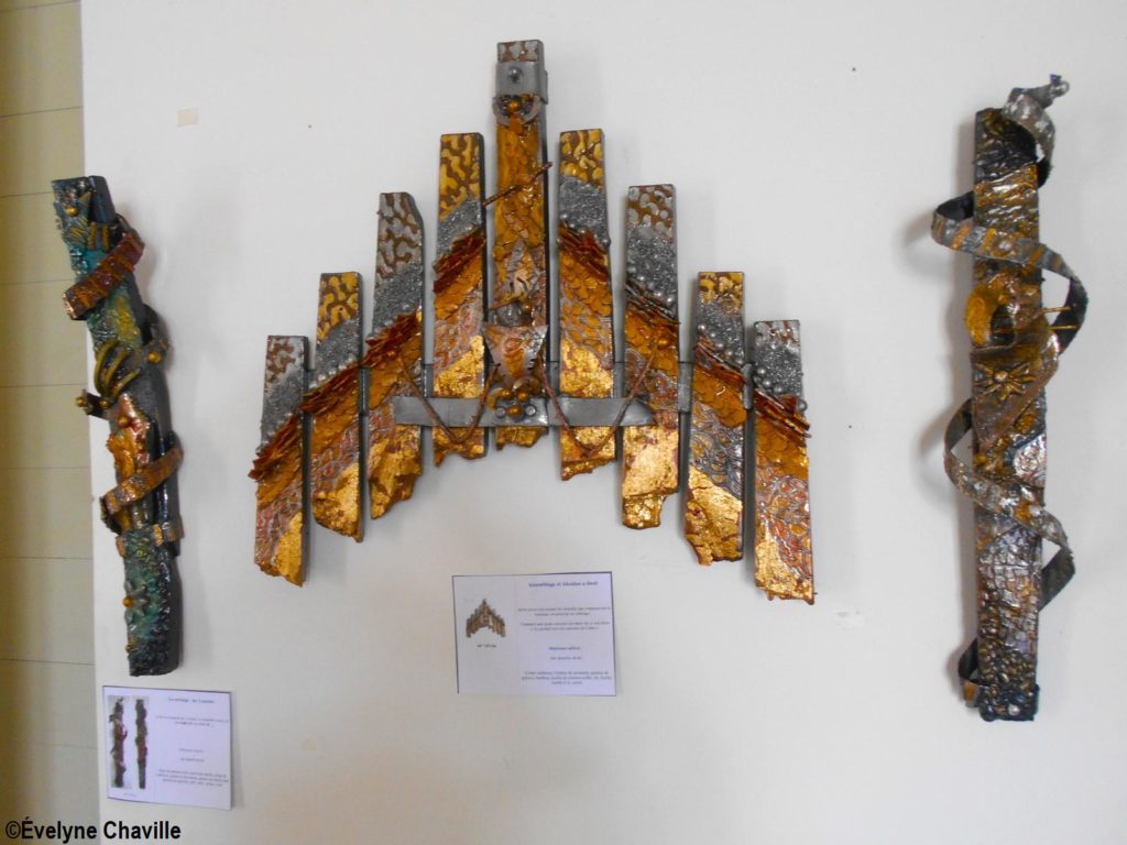 L. B. : C’est de la récupération. Ce sont des graines végétales qui m’ont été offertes, le bois qui sont des douelles de ka d’Yves Thôle qui devaient partir à la déchetterie car elles n’étaient pas conformes pour la fabrication du ka donc je les ai récupérées et je les ai sublimées.