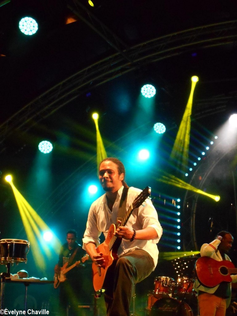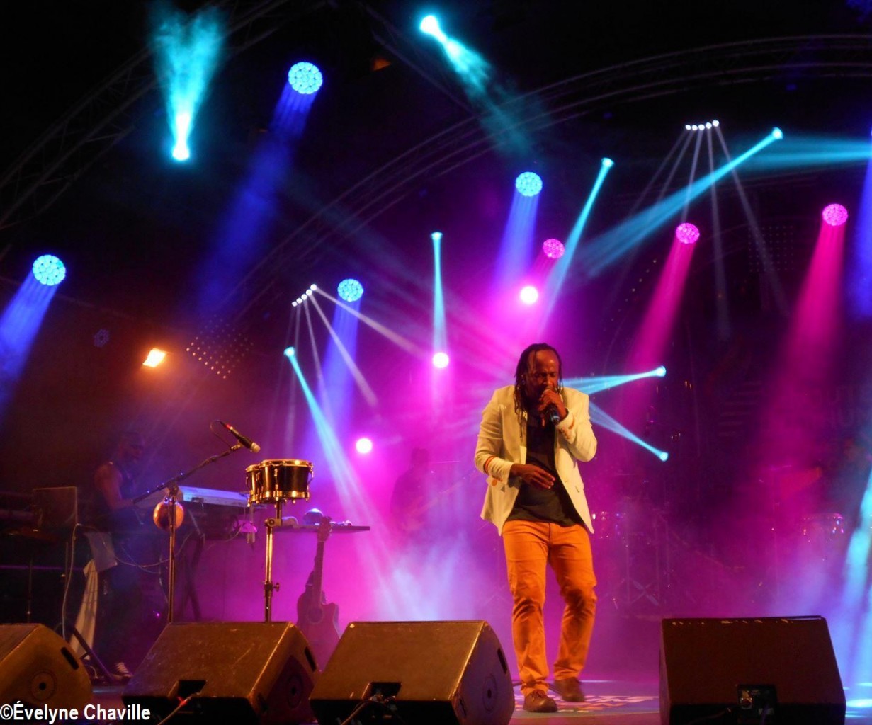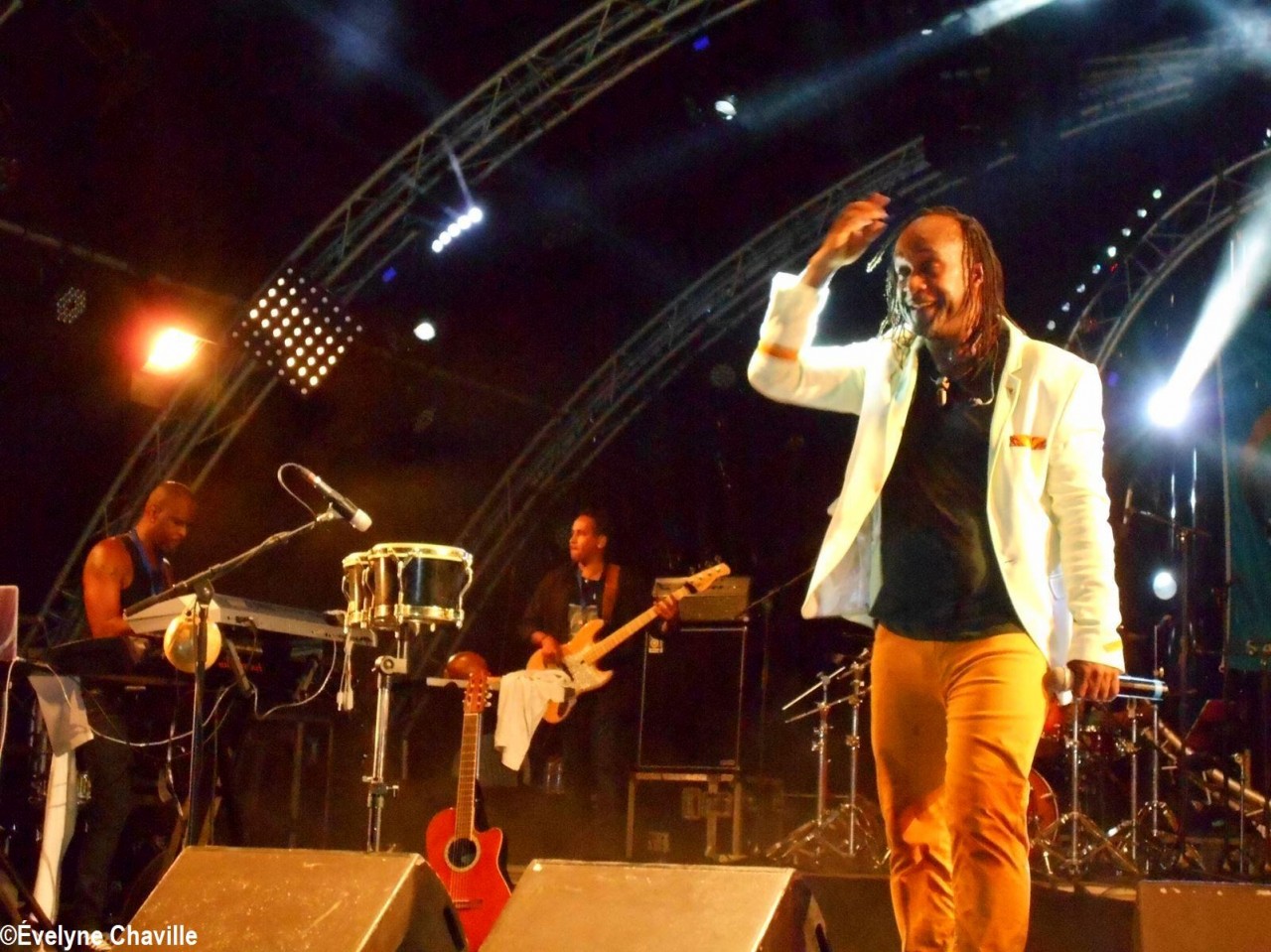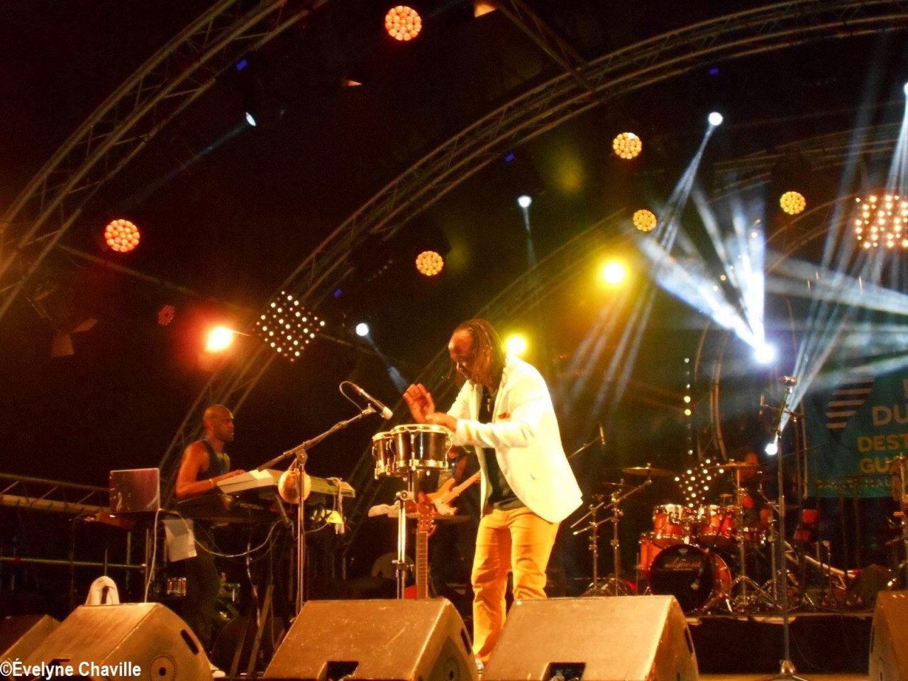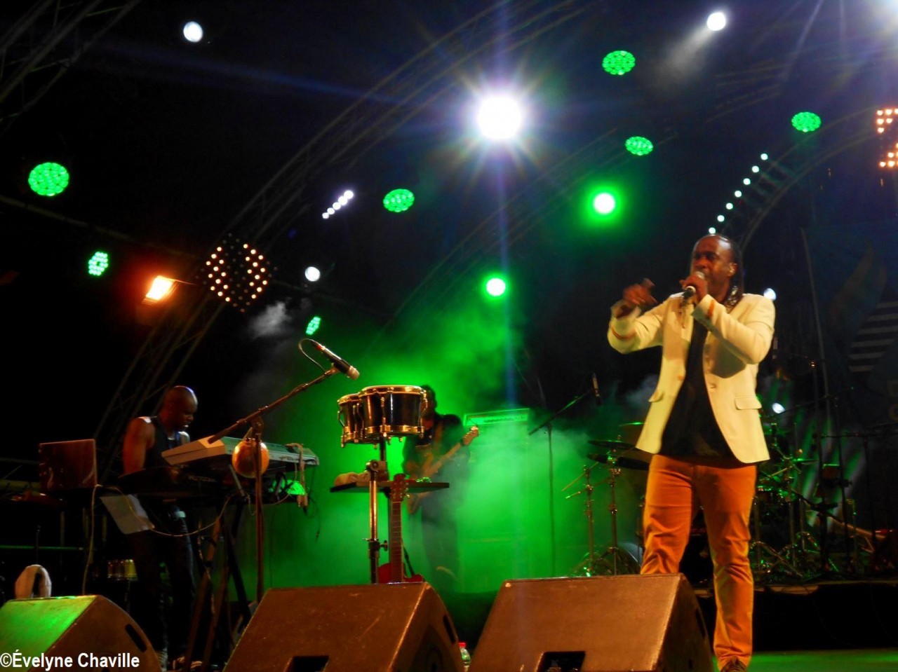 Juste avant l’arrivée de Dominique Coco sur le podium, ses talentueux musiciens parmi lesquels le batteur Jérôme Castry et le bassiste Willy Jean ont lancé une introduction musicale d’enfer puis ses choristes élégamment vêtues parmi lesquelles Lydia Barlagne ont pris place derrière leur micro. Ensuite, le show pouvait débuter. Lorsque l’artiste est apparu sur scène, il y a eu une explosion de joie, une sorte d’hystérie collective. Dominique Coco a commencé à interpréter ses nombreux succès tels que “Gwada”, “Natirèl Poézi”, “Chimen an mwen”, “Zanmi-o”, en s’accompagnant parfois de sa guitare et la foule n’a pas arrêté de chanter en choeur avec lui. Il n’a pas oublié de faire un clin d’oeil à “Volte face”, le groupe qui l’a révélé au public aux côtés du bassiste guadeloupéen Georges Décimus, de la chanteuse martiniquaise Catherine Thélamon, du chanteur et guitariste guadeloupéen Dominique Panol et du regretté chanteur dominiquais Jeff Joseph.