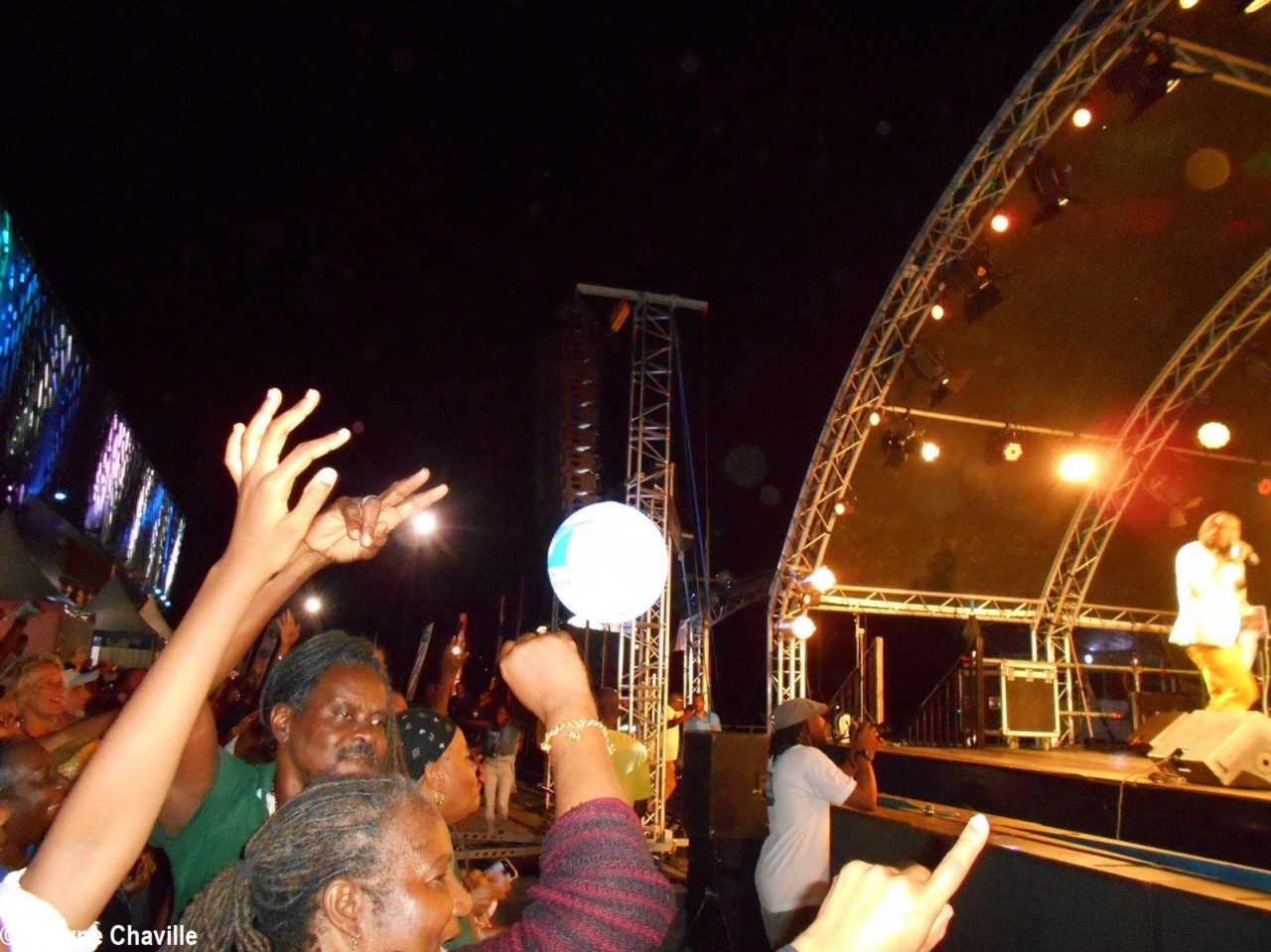 Le chanteur qui se présente comme un “militant culturel” a aussi revendiqué son appartenance à la Caraïbe notamment à travers le titre “Imajiné”. Les fans étaient toujours en délire, parmi eux cette jeune femme qui criait pour que Dominique Coco interprète sa chanson intitulée “Chivé natirèl” (Cheveux naturels) alors qu’elle portait une perruque… On dit qu’un concert sert parfois d’exutoire mais visiblement il permet aussi exprimer une envie profonde…