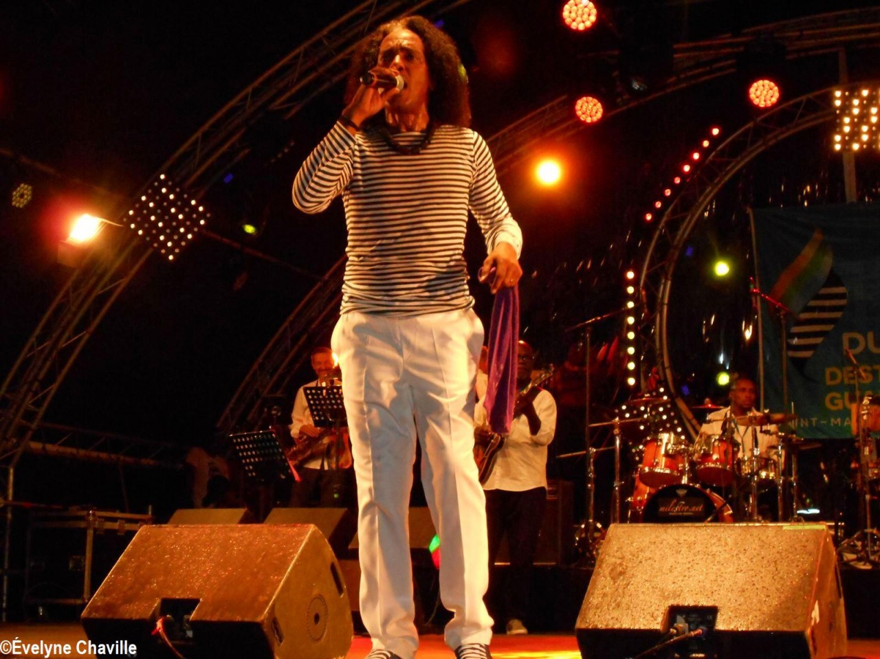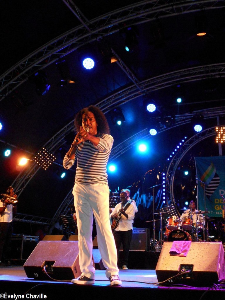 Durant tout le concert, cet amoureux de la musique traditionnelle était en parfaite communion avec les spectateurs; celui qui est devenu récemment le président de l’association centenaire “Les Cuisinières de la Guadeloupe” décidait même de descendre de la scène pour aller chanter et danser au milieu de la foule. Il faut préciser que le chanteur qui est aussi un excellent danseur accompagnait toutes ses interprétations de pas de danse et, au début puis à la fin du show, il était rejoint sur scène par deux charmantes danseuses…