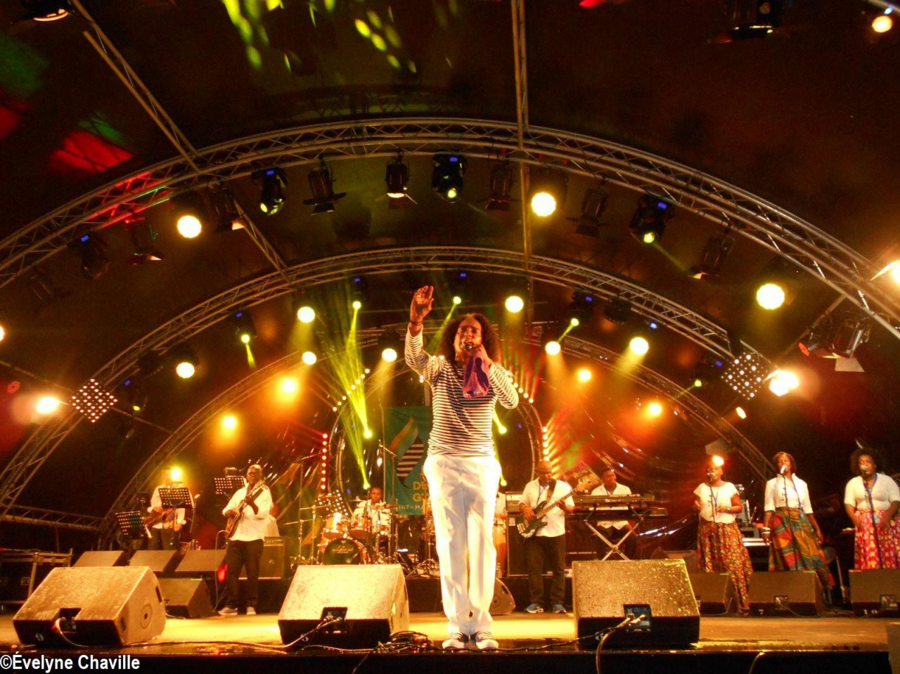 Pour la circonstance, l’artiste guadeloupéen avait revêtu une tenue élégante de marin mais, très vite, la chaleur allait croître malgré la pluie et le vent de la mer et il était contraint d’enlever sa veste afin d’être plus à l’aise pour s’exprimer devant son public. À travers les nombreux titres interprétés, Rony Théophile – qui étaient accompagné par des talentueux musiciens tels que le bassiste très connu, Frédéric Caracas – invitait à visiter son univers musical guadeloupéen et plus largement caribéen avec des rythmes de biguine, gwoka, salsa entre autres pour le plus grand plaisir du public.