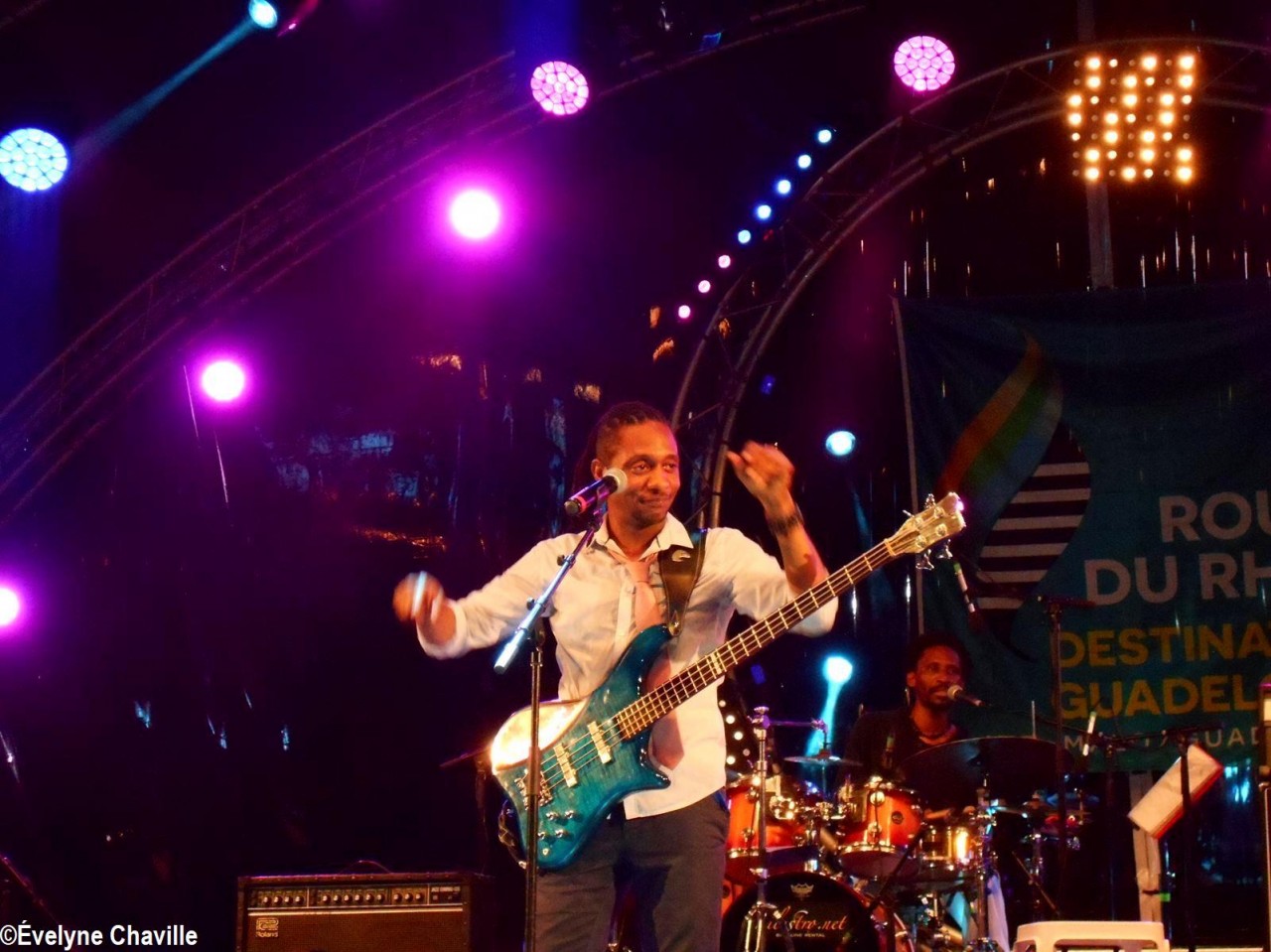 Stéphane Castry était l’invité de la scène artistique de la 11e édition et du 40e anniversaire de la mythique Route du Rhum-Destination Guadeloupe, le mercredi 21 novembre dernier entre 19h30 et 20h30 au Mémorial ACTe à Pointe-à-Pitre. Accompagné de trois autres musiciens dont le batteur très connu Sony Troupé, d’un chanteur et d’une slameuse, le talentueux bassiste guadeloupéen a présenté au public son premier album d’une quinzaine de titres intitulé “Basstry Therapy” qui est sorti en 2017. Les spectateurs ont découvert un univers musical où les rythmes caribéens se mêlent au funk des années 1970 et au jazz. Si certains découvraient l’artiste qui a pourtant collaboré avec des stars de la musique comme “Kassav”, Kéziah Jones, Angélique Kidjo ou encore Imany et écoutaient avec attention ses compositions, d’autres étaient des fans qui faisaient des commentaires élogieux…