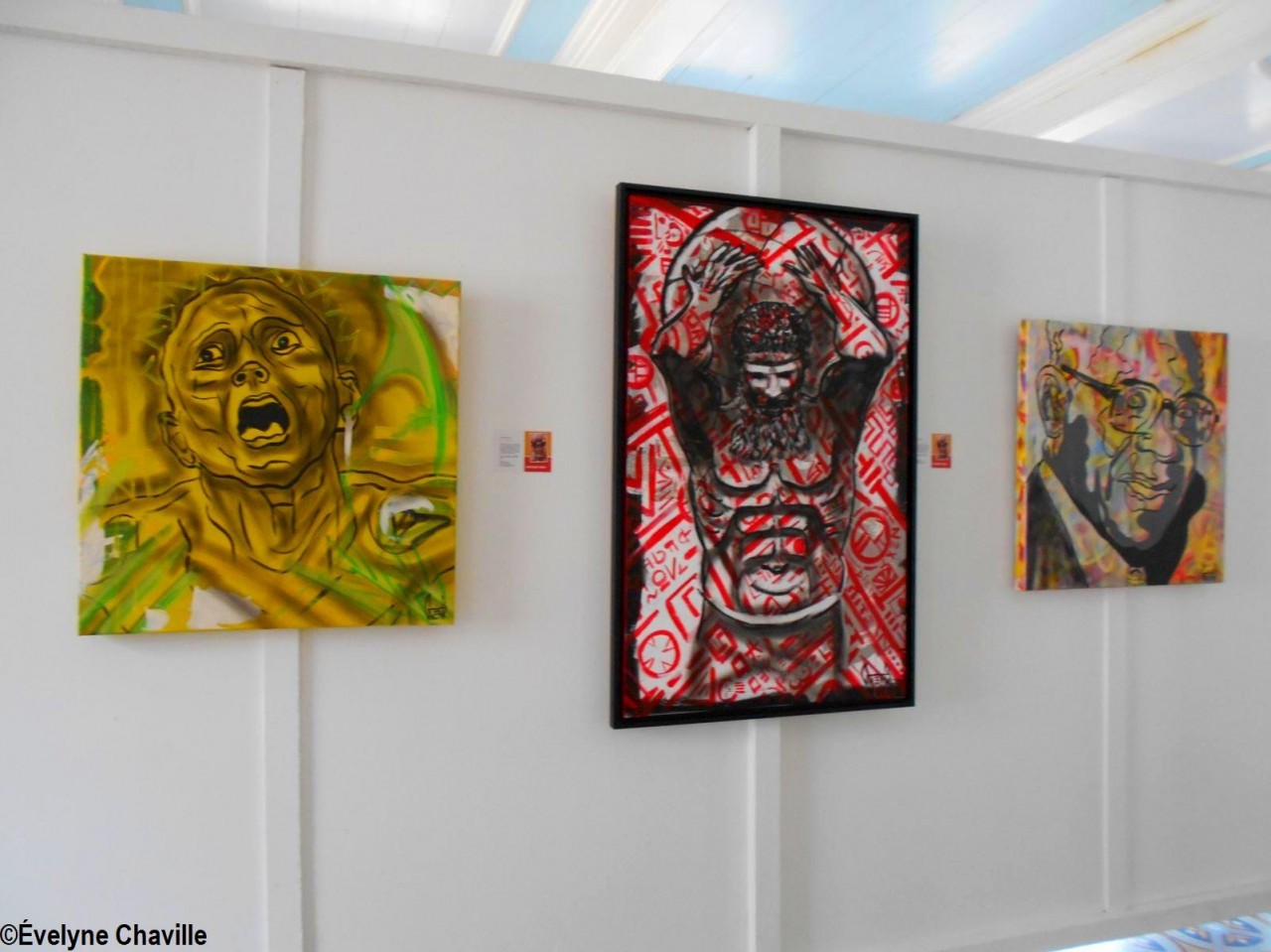 Commencée le vendredi 3 mai dernier, l’exposition de tableaux se poursuit jusqu’au 25 mai au rez-de-chaussée du Pavillon de la Ville (ancien Presbytère), près de la Place de la Victoire à Pointe-à-Pitre. Ils sont une dizaine d’artistes, certains venant du milieu du street art, d’autres pas, à montrer une cinquantaine d’oeuvres de style abstrait et figuratif au public. Citons Alfrédus, Grif, Tatane, Clek, Mick, Gwenb GB13, Nicole Silvestre, Michel Desgranges, Fabienne Sanka ou encore Micheline Selbonne.